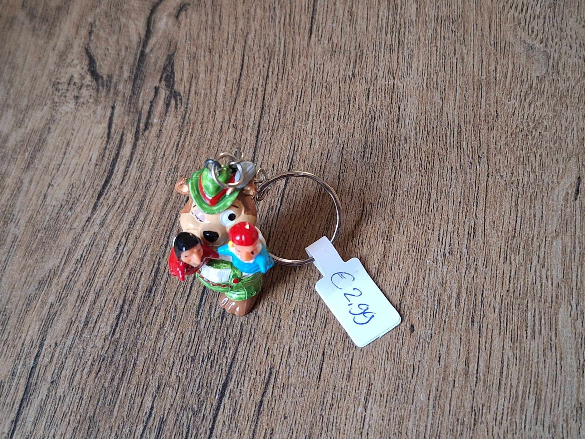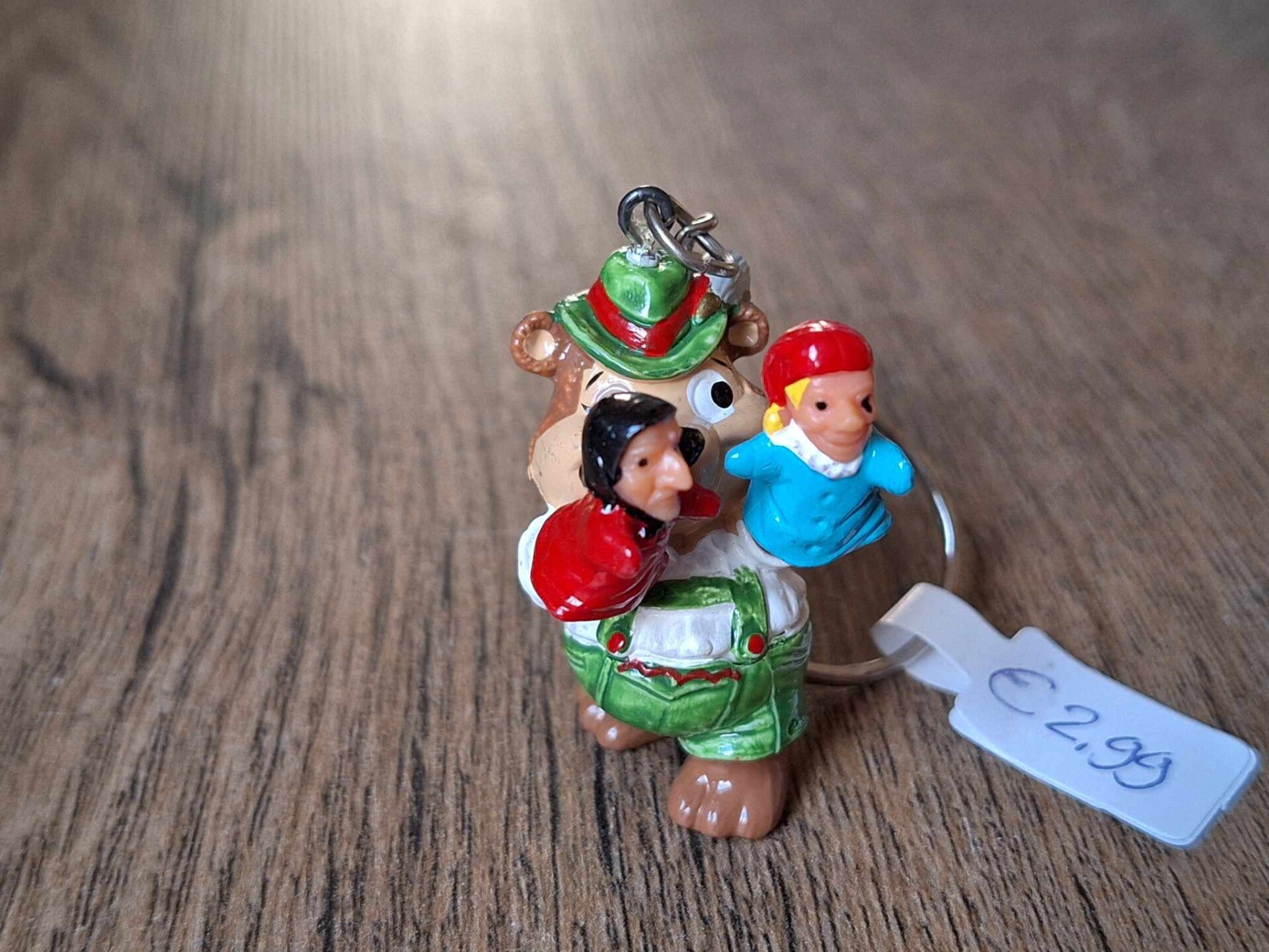 De sleutelhanger is handgemaakt met een leuk figuurtje : beer met handpoppen !!Het figuurtje is ongeveer 4cm groot.Materiaal : kunststof.