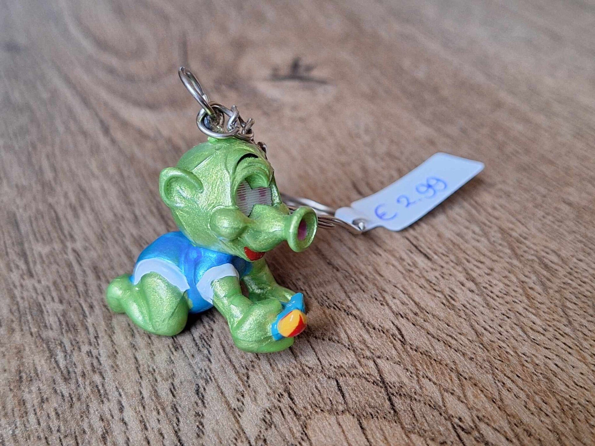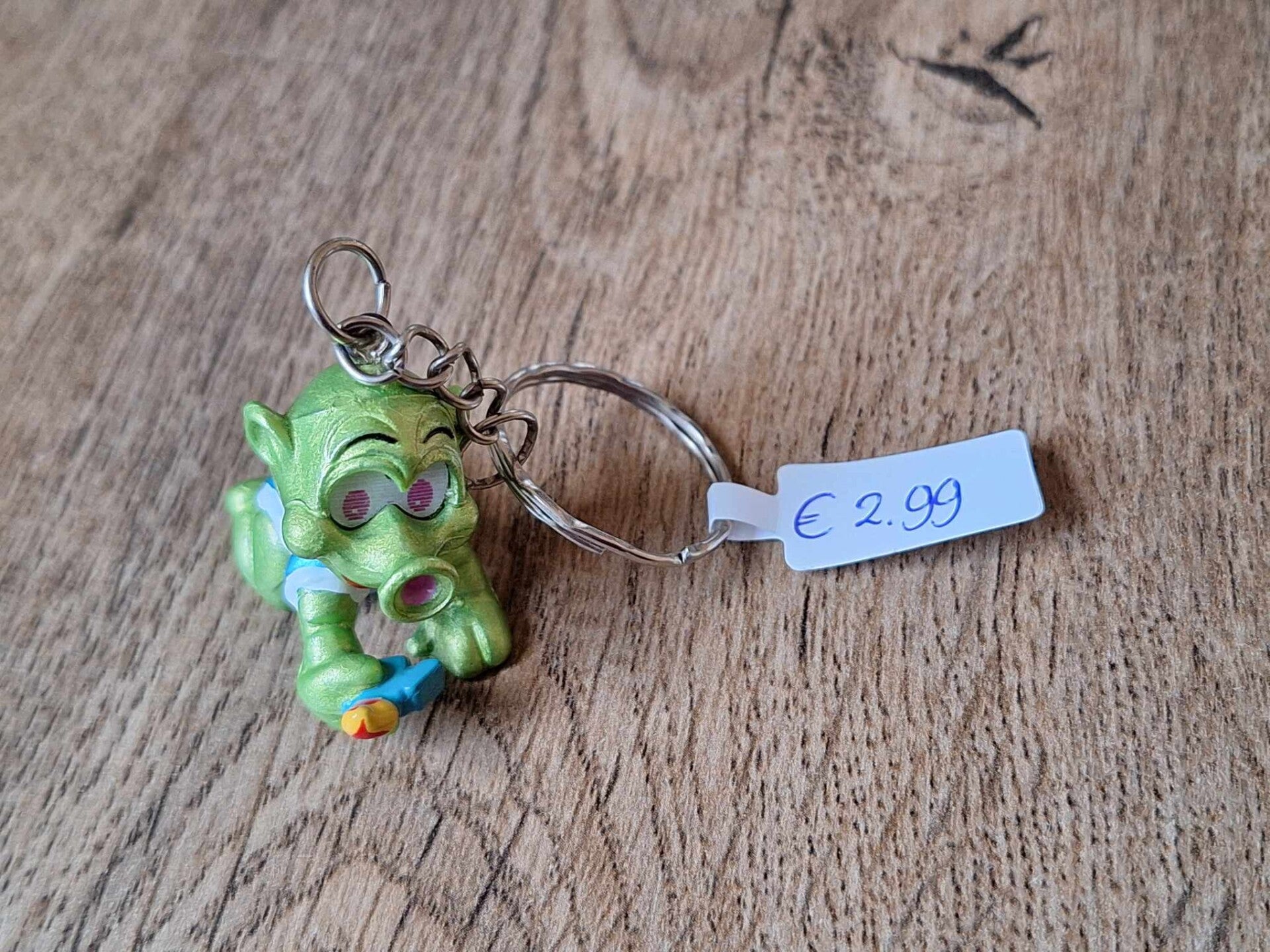 De sleutelhanger is handgemaakt met een leuk figuurtje : aliën !!Het figuurtje is ongeveer 3cm groot.Materiaal : kunststof.