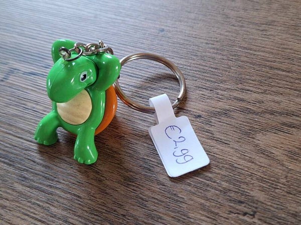 De sleutelhanger is handgemaakt met een leuk figuurtje : schildpadje !!Het figuurtje is ongeveer 3,5cm groot.Materiaal : kunststof.