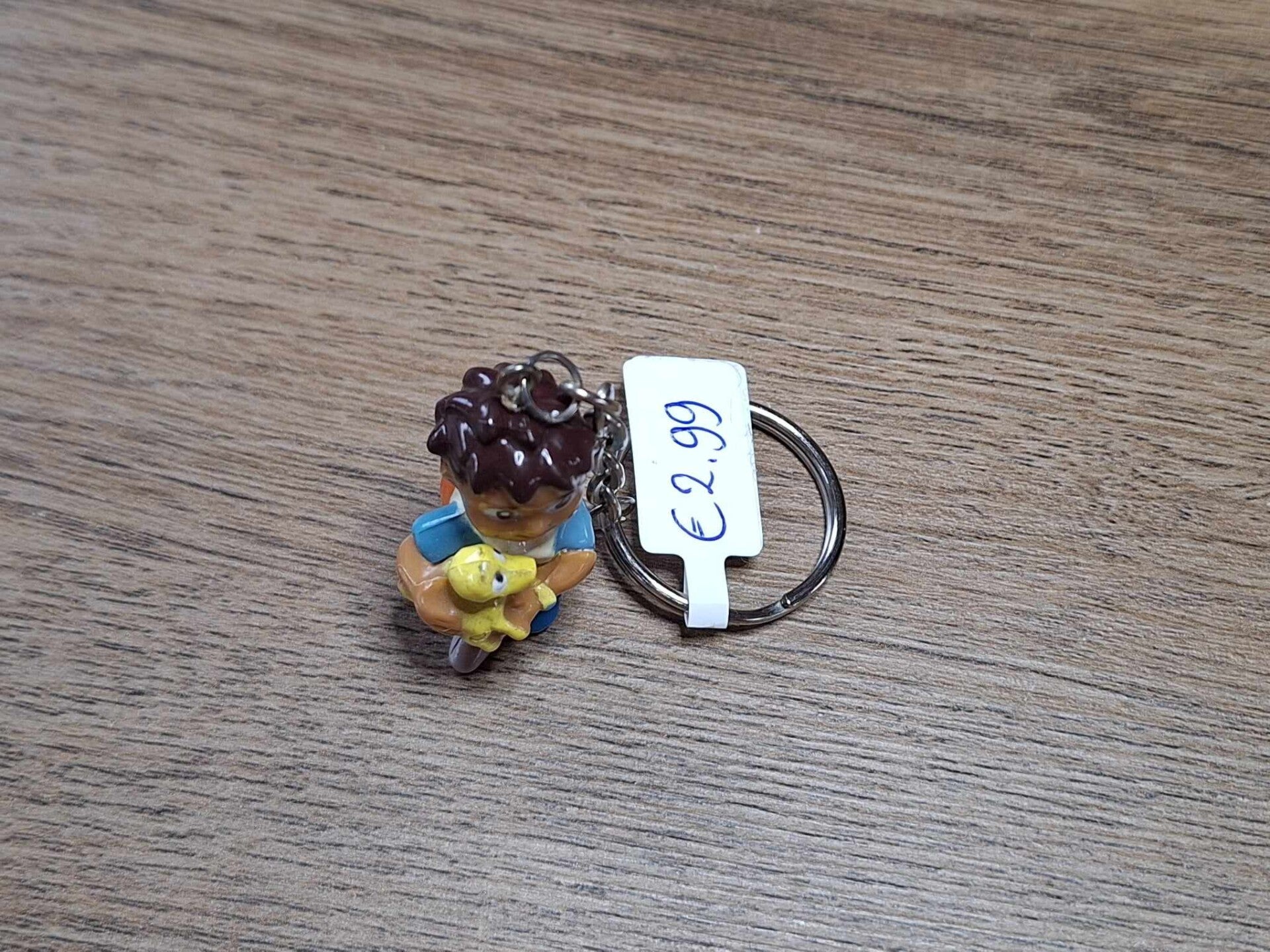 De sleutelhanger is handgemaakt met een leuk figuurtje : diego !!Het figuurtje is ongeveer 3,5cm groot.Materiaal : kunststof.