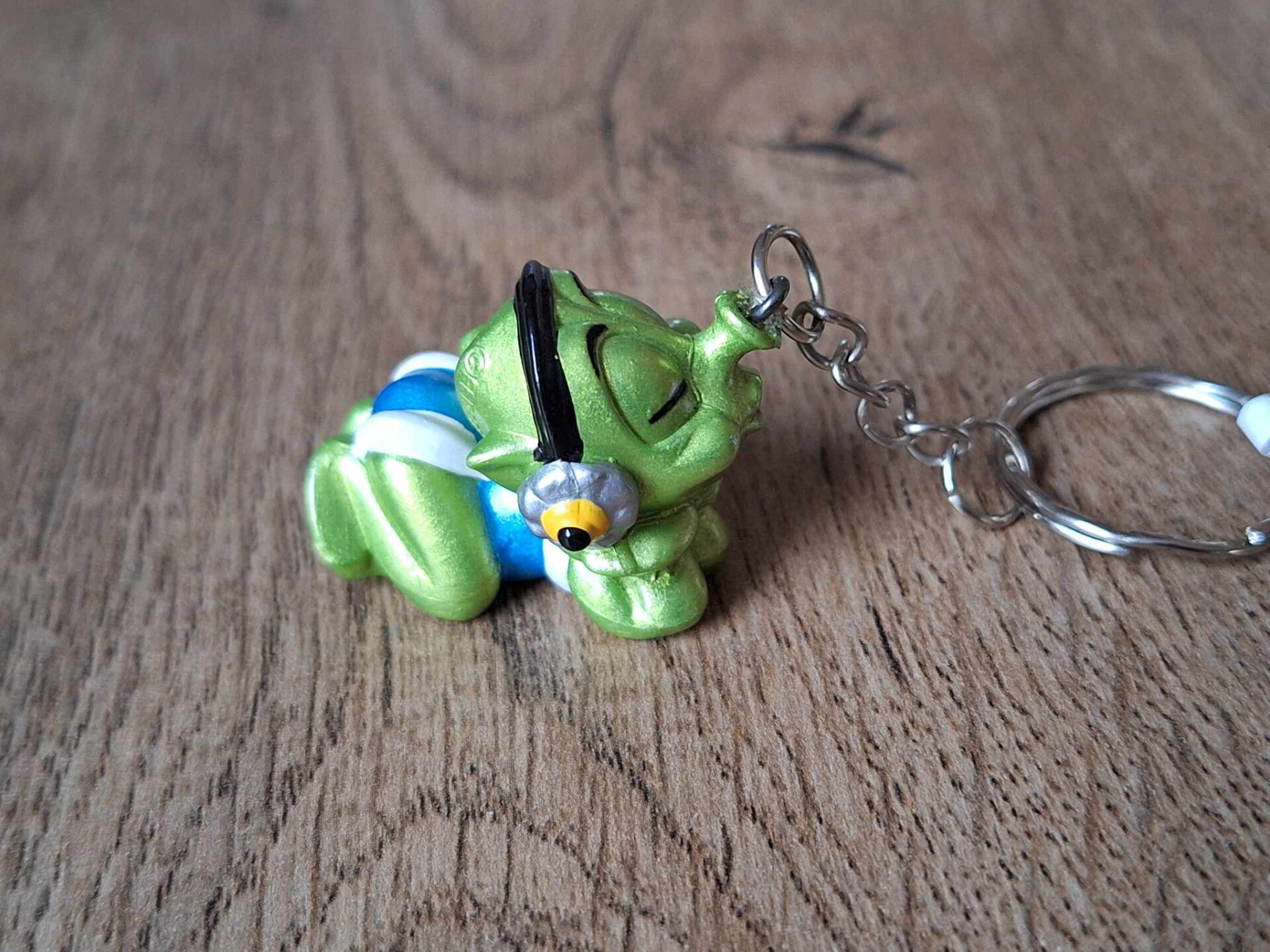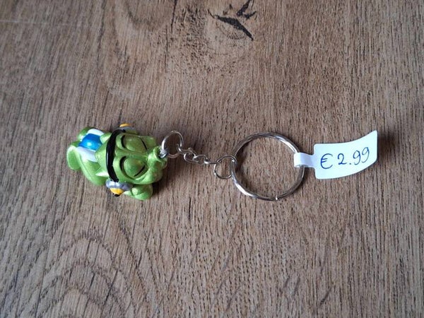 De sleutelhanger is handgemaakt met een leuk figuurtje : aliën 3 !! Het figuurtje is ongeveer 3cm groot.Materiaal : kunststof.