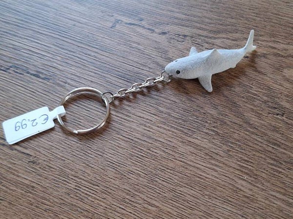 De sleutelhanger is handgemaakt met een leuk dier figuurtje : haai !! Het figuurtje is ongeveer 5cm groot.Materiaal : kunststof met een laagje stof.