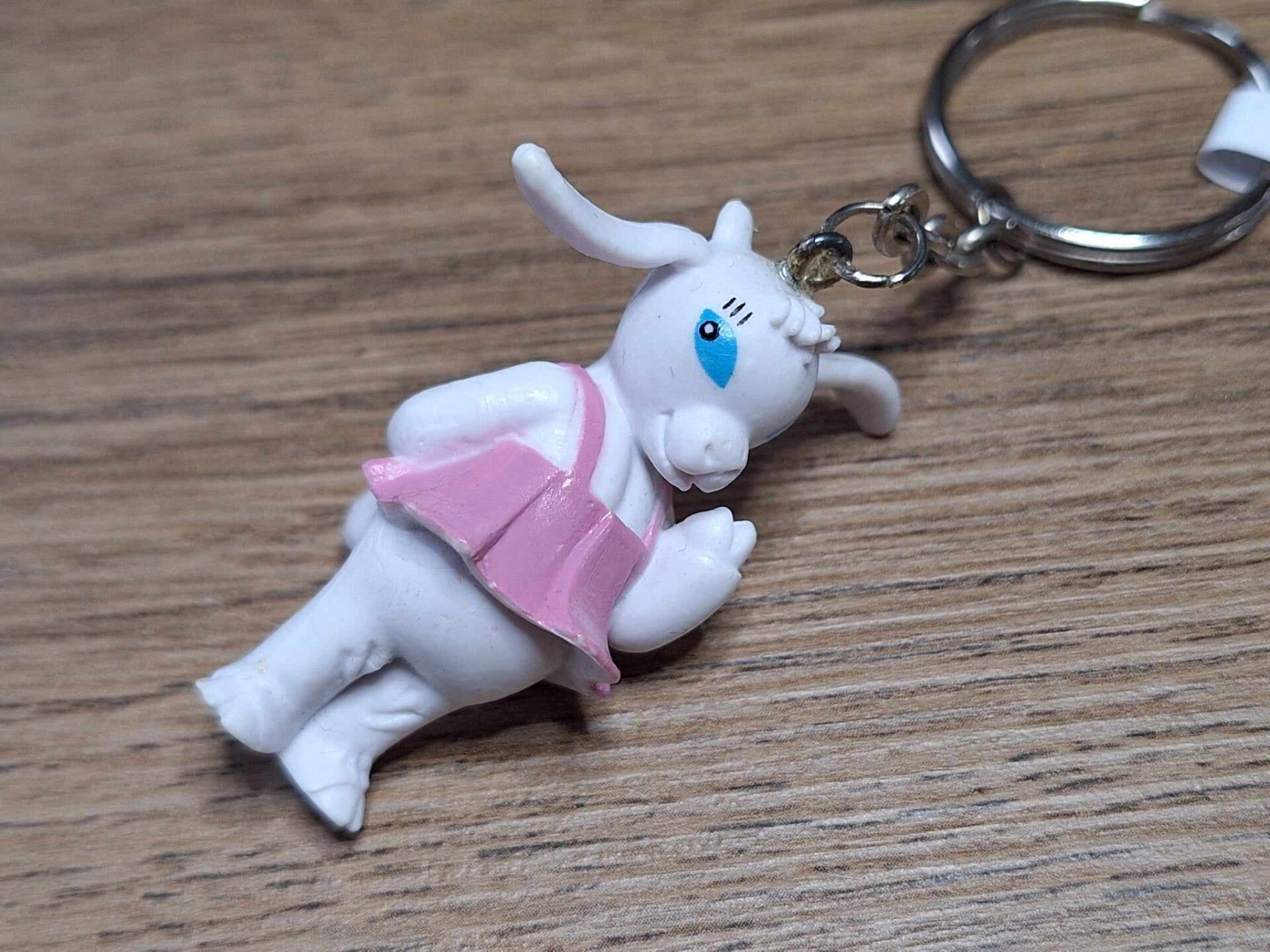 De sleutelhanger is handgemaakt met een leuk sprookje figuurtje : wit geitje !!Komt uit het sprookje : de wolf en de 7 geitjes.Het figuurtje is ongeveer 4cm grootmateriaal : pvc.