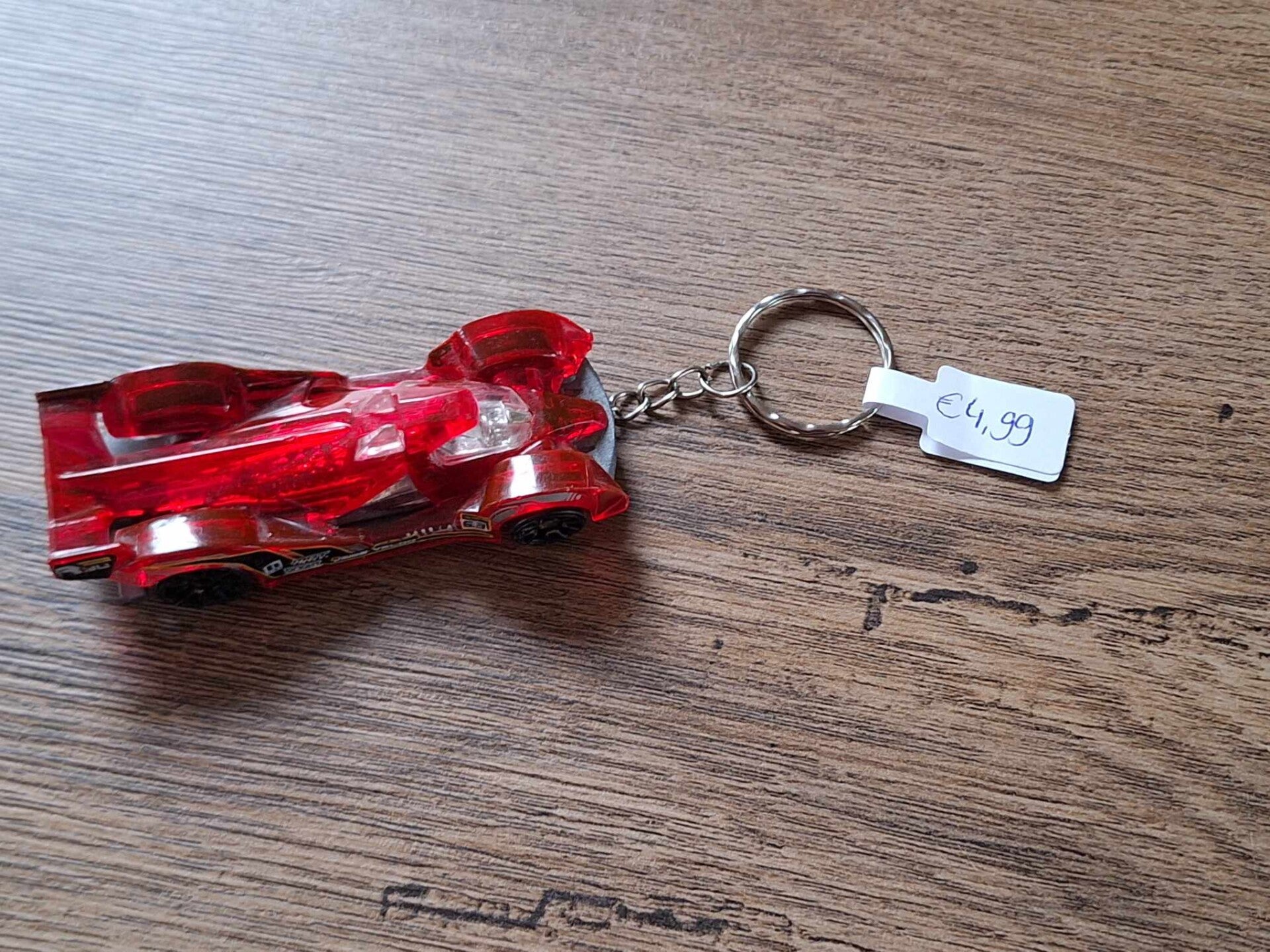 Leuk om aan een sleutel of tas te hangen, als cadeau te geven.De sleutelhanger is handgemaakt met een leuk hotwheels figuurtje : hi-tech missile !! De auto is ongeveer 7,5cm groot. Materiaal : metaal en kunststof.