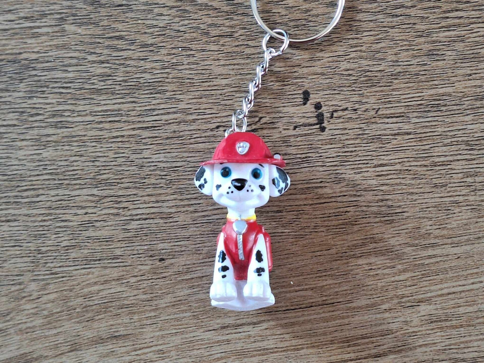 Leuk om aan een sleutel of tas te hangen, of als cadeau te geven.De sleutelhanger is handgemaakt met een leuk figuurtje : Marshall !!Komt uit de serie : Paw Patrol.Het figuurtje is ongeveer 4,5cm groot.Materiaal : PVC