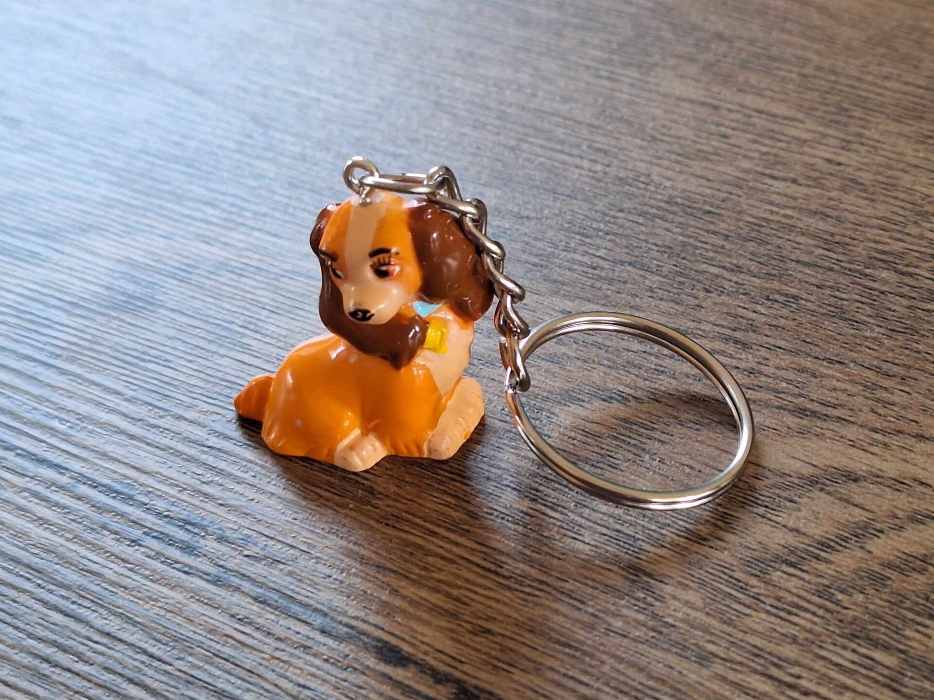 Leuk om aan een sleutel of tas te hangen, of als cadeau te geven.De sleutelhanger is handgemaakt met een leuk disney figuurtje : Lady !!Uit de film : Lady en de Vagebond.Het figuurtje is ongeveer 3cm groot.Materiaal : kunststof.