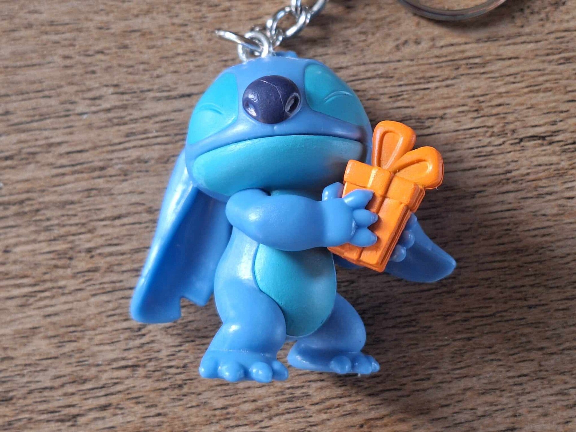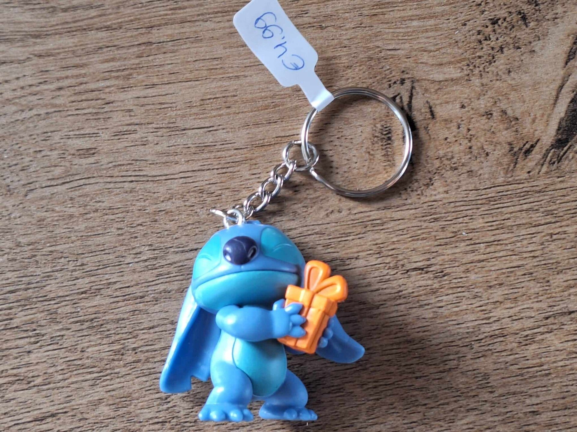 Leuk om aan een sleutel of tas te hangen, of als cadeau te geven.De sleutelhanger is handgemaakt met een leuk figuurtje : Stitch !!Komt uit de disney film : Lilo & Stitch.Het figuurtje is 4,5Cm hoog.Materiaal : kunststof