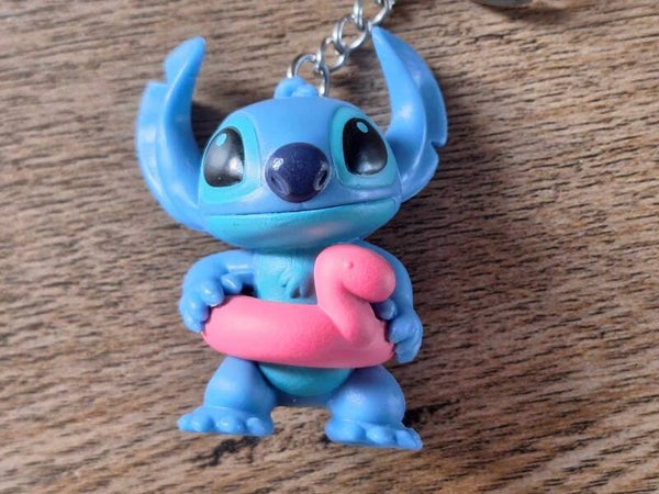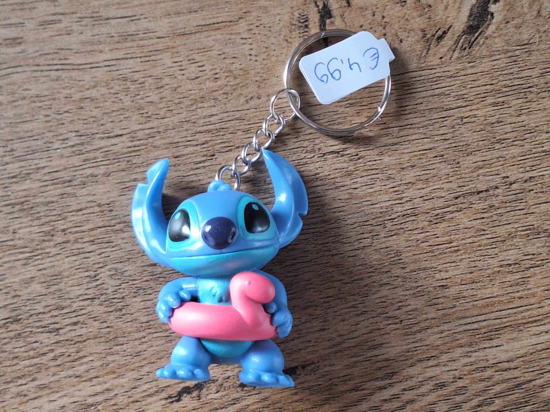 Leuk om aan een sleutel of tas te hangen, of als cadeau te geven.De sleutelhanger is handgemaakt met een leuk figuurtje : Stitch !!Komt uit de disney film : Lilo & Stitch.Het figuurtje is 5,5Cm hoog.Materiaal : kunststof.