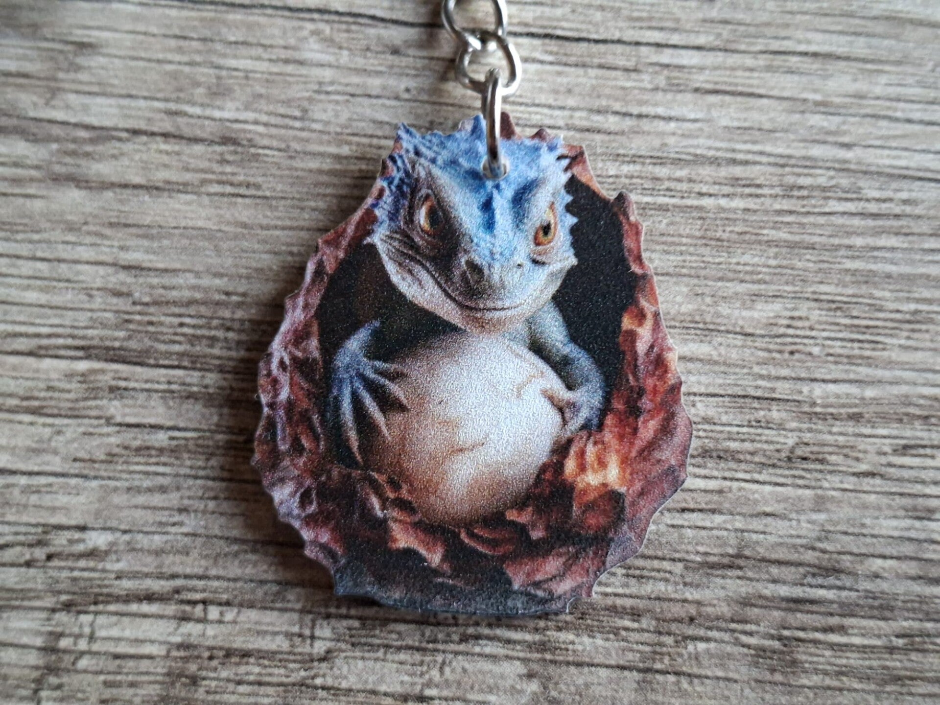 De sleutelhanger is handgemaakt met een leuk 2D dino hangertje !!