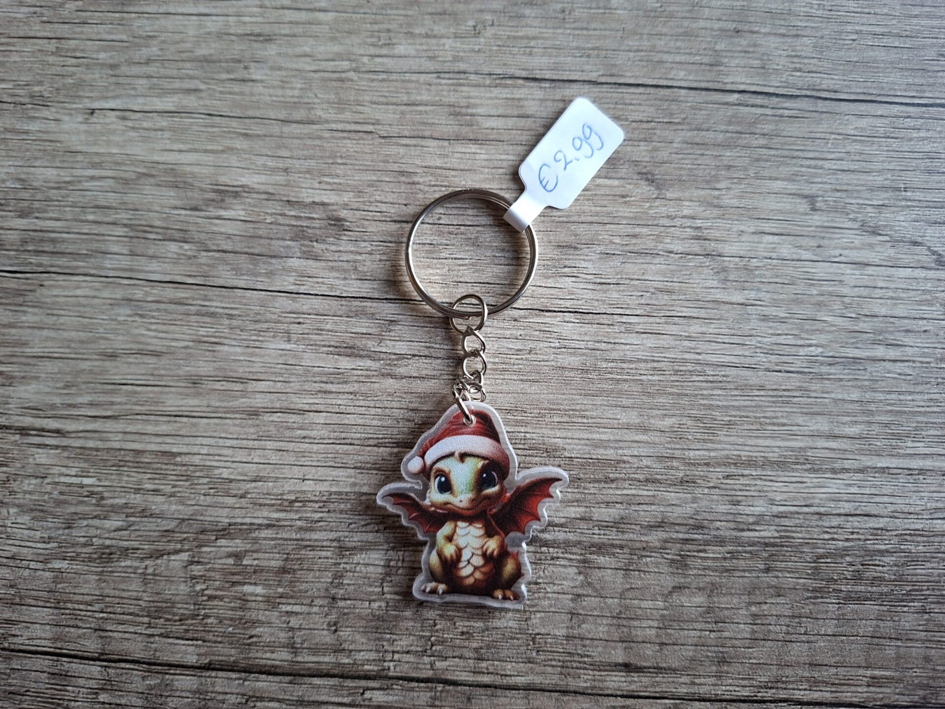 Leuk om aan een sleutel of tas te hangen, of als cadeau te geven.De sleutelhanger is handgemaakt met een leuk 2D Kerst Draakje hangertje !!Het hangertje is ongeveer 3,5cm hoog, ongeveer 3,5cm breed en ongeveer 2mm dik.Materiaal : PMMA
