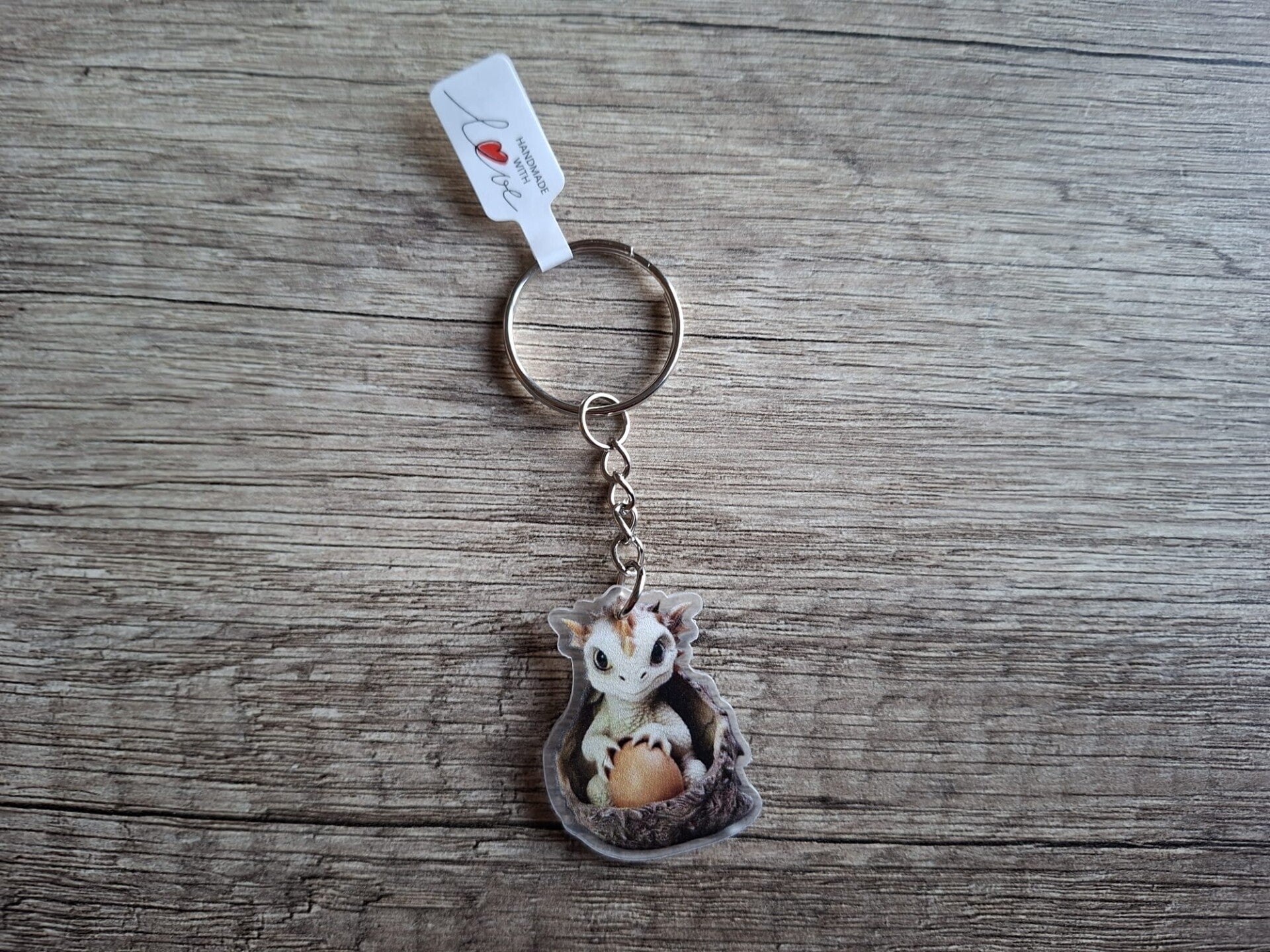 Leuk om aan een sleutel of tas te hangen, of als cadeau te geven.De sleutelhanger is handgemaakt met een leuk 2D dino hangertje !!Het hangertje is ongeveer 3,5cm hoog, ongeveer 3cm breed en ongeveer 2mm dik.Materiaal : PMMA