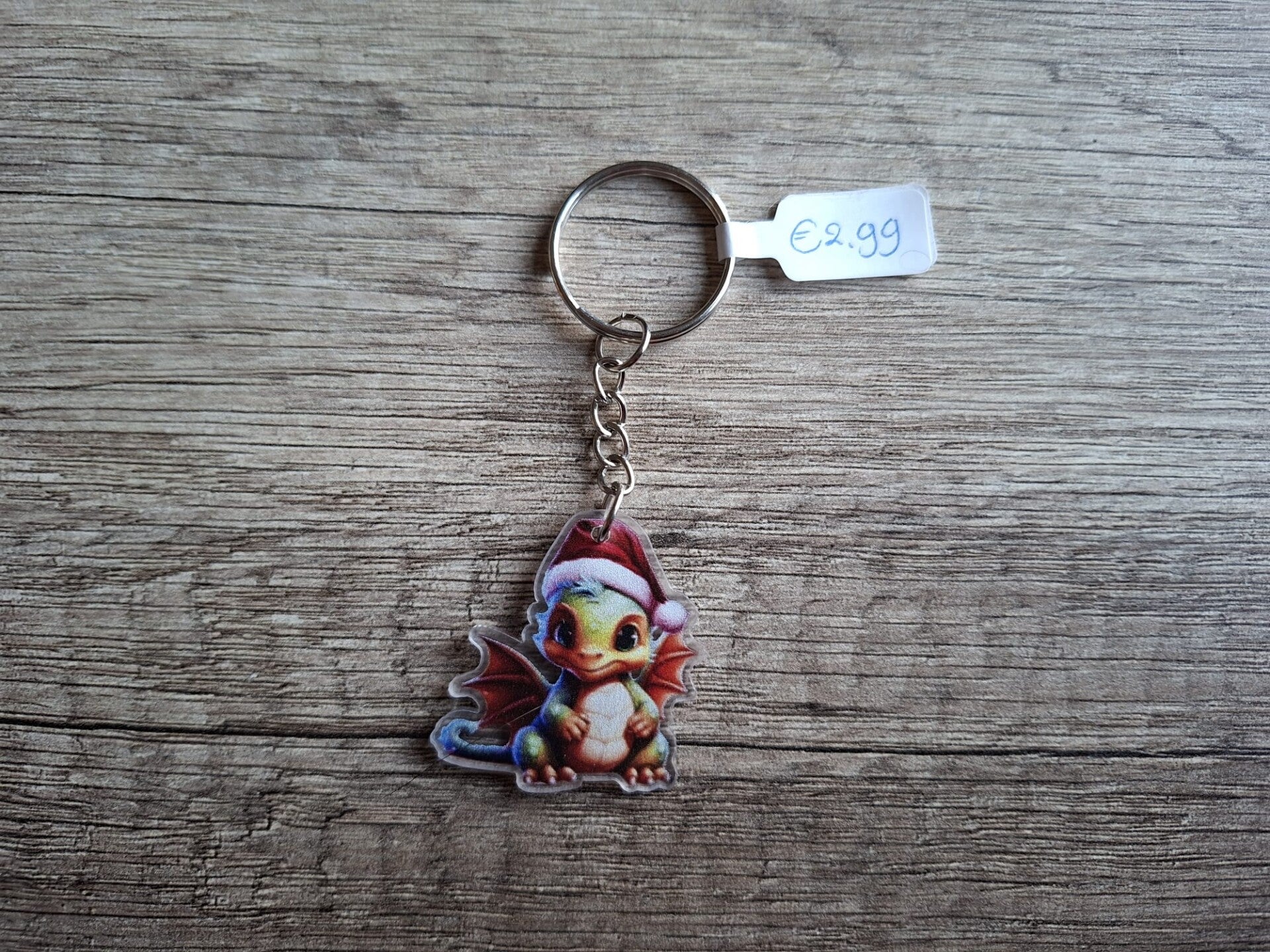 De sleutelhanger is handgemaakt met een leuk 2D Kerst Draakje hangertje !!