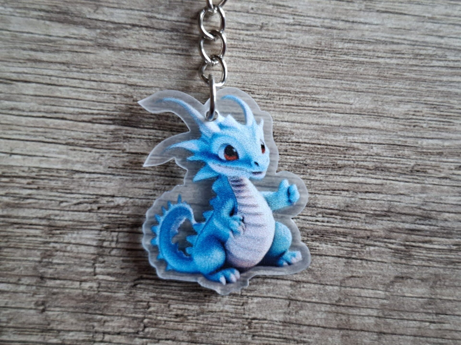 De sleutelhanger is handgemaakt met een leuk 2D Draakje hangertje !!