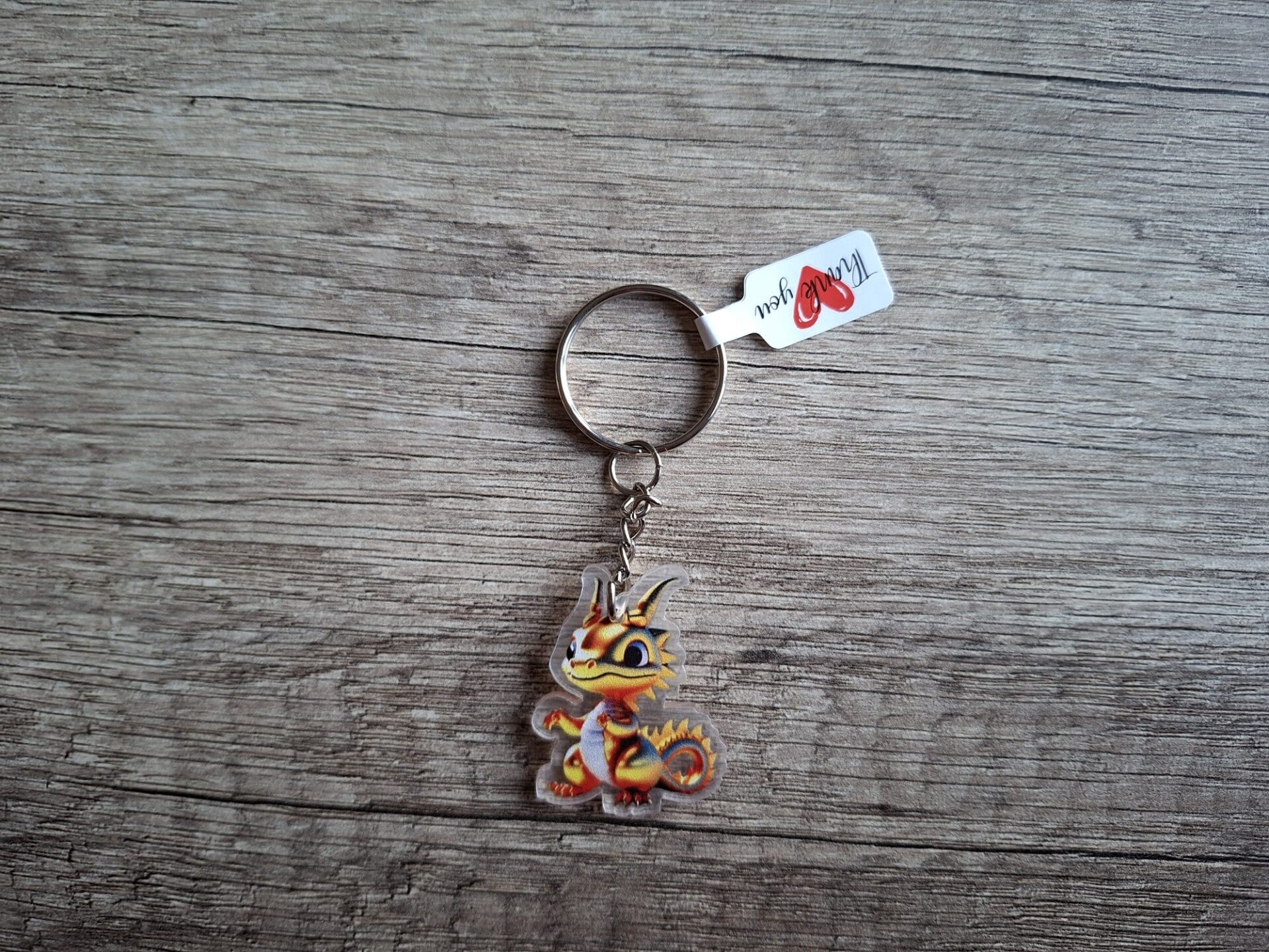 De sleutelhanger is handgemaakt met een leuk 2D Draakje hangertje !!