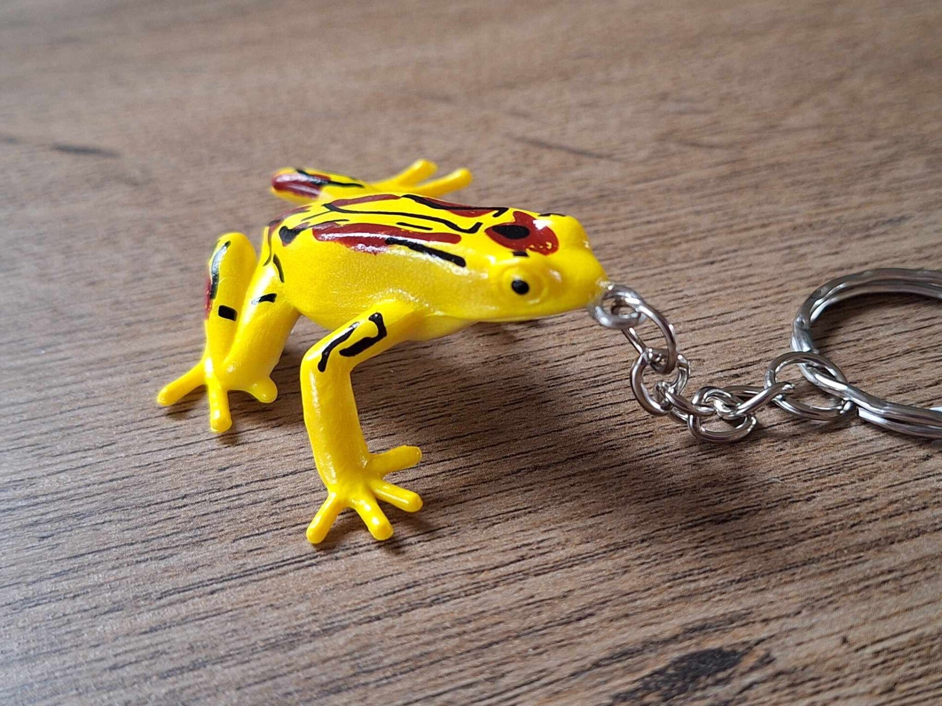 Leuk om aan een sleutel of tas te hangen, of als cadeau te geven.De sleutelhanger is handgemaakt met een leuk dier figuurtje : Kikker !!Het figuurtje is ongeveer 4,5cm hoog en ongeveer 5,5cm breed.Materiaal : pvc.