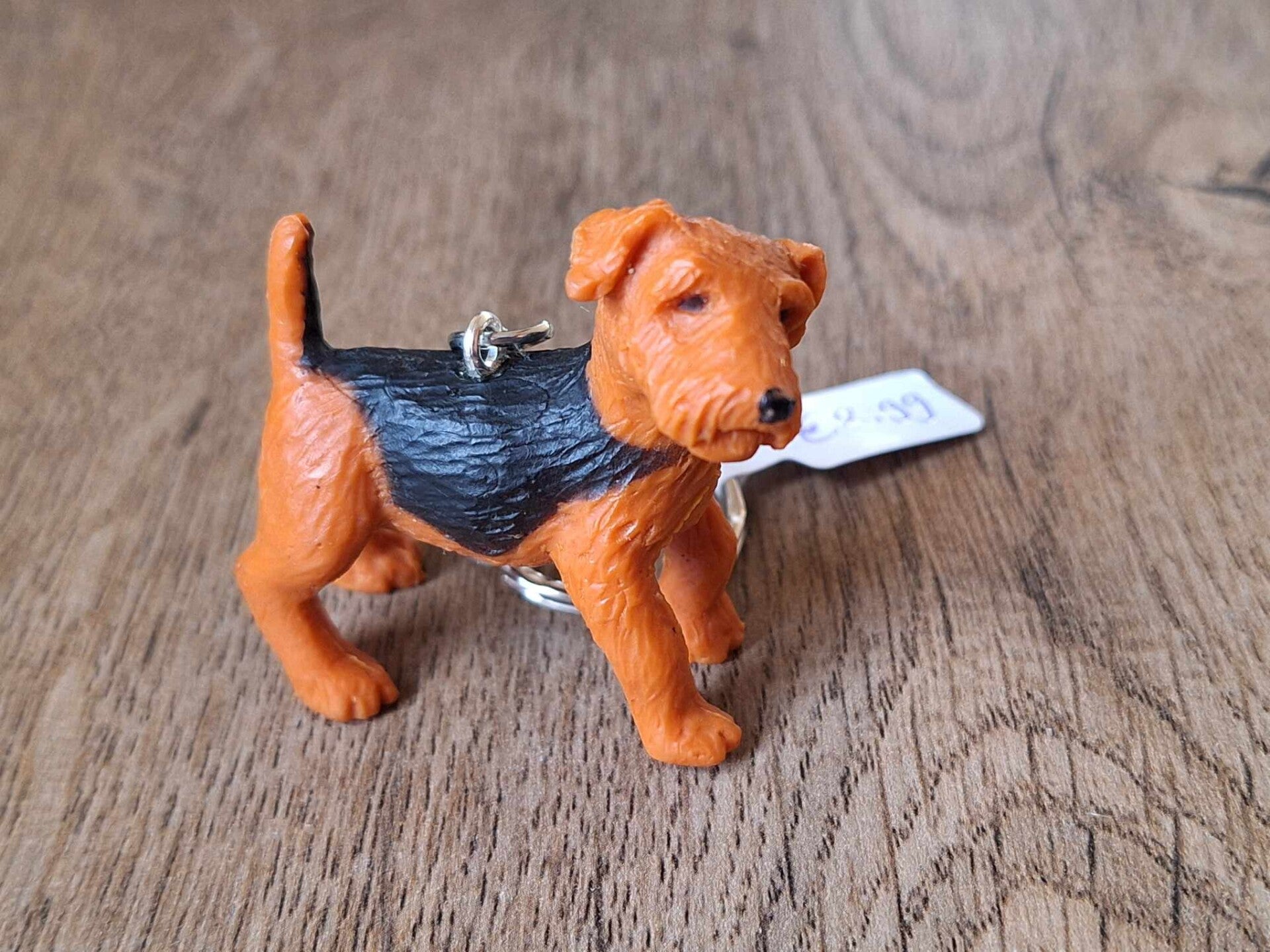 Leuk om aan een sleutel of tas te hangen, of als cadeau te geven.De sleutelhanger is handgemaakt met een leuk hond figuurtje : Fox Terrier !!Het figuurtje is ongeveer 4,5cm hoog en ongeveer 4cm lang.Materiaal : pvc.