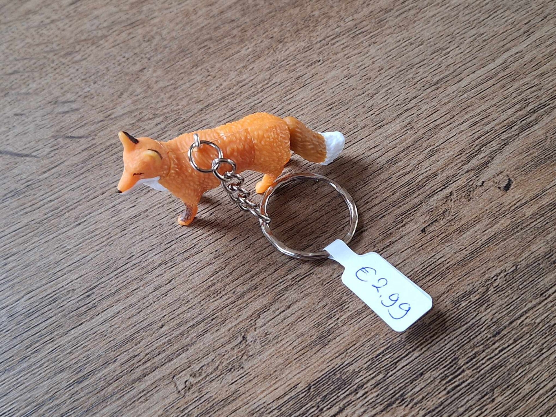 Leuk om aan een sleutel of tas te hangen, of als cadeau te geven.De sleutelhanger is handgemaakt met een leuk dier figuurtje : Vos !!Het figuurtje is ongeveer 2,5cm hoog en ongeveer 6cm lang.Materiaal : Kunststof.