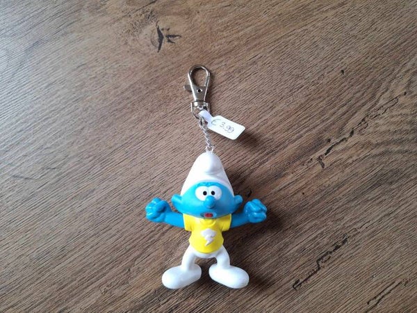Leuk om aan een tas of sleutel te hangen, of als cadeau te geven.De Tassenhanger is handgemaakt met een leuk figuurtje : Boze Smurf !!Het figuurtje is 7cm groot.Materiaal : kunststof.