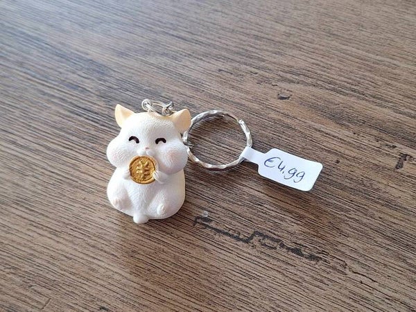 De sleutelhanger is handgemaakt met een leuk dier figuurtje : Hamster !!Het figuurtje is ongeveer 3cm hoog en ongeveer 2,5cm lang.Materiaal : Resin