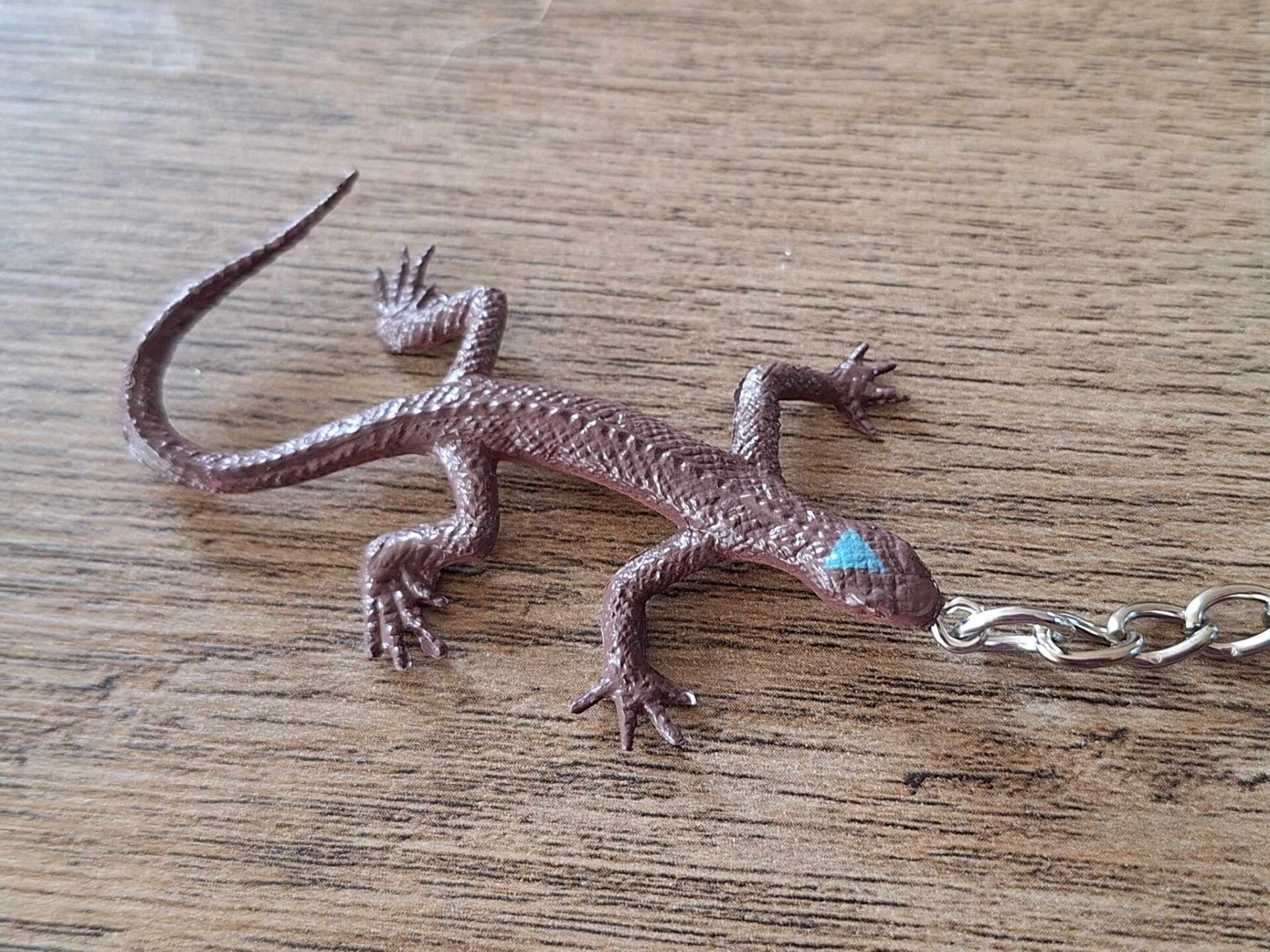 Leuk om aan een sleutel of tas te hangen, of als cadeau te geven.De sleutelhanger is handgemaakt met een leuk dier figuurtje : Salamander !!Het figuurtje is ongeveer 6cm lang en ongeveer 3,5cm breed.Materiaal : pvc.