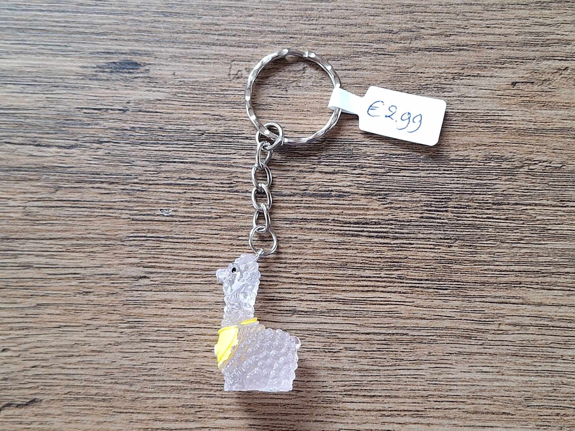 De sleutelhanger is handgemaakt met een leuk Glow in Dark figuurtje : Alpaca !!