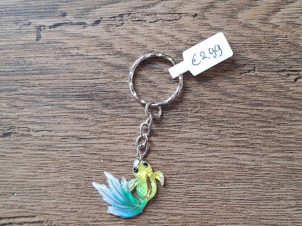 De sleutelhanger is handgemaakt met een leuk dier figuurtje : Goudvis !!