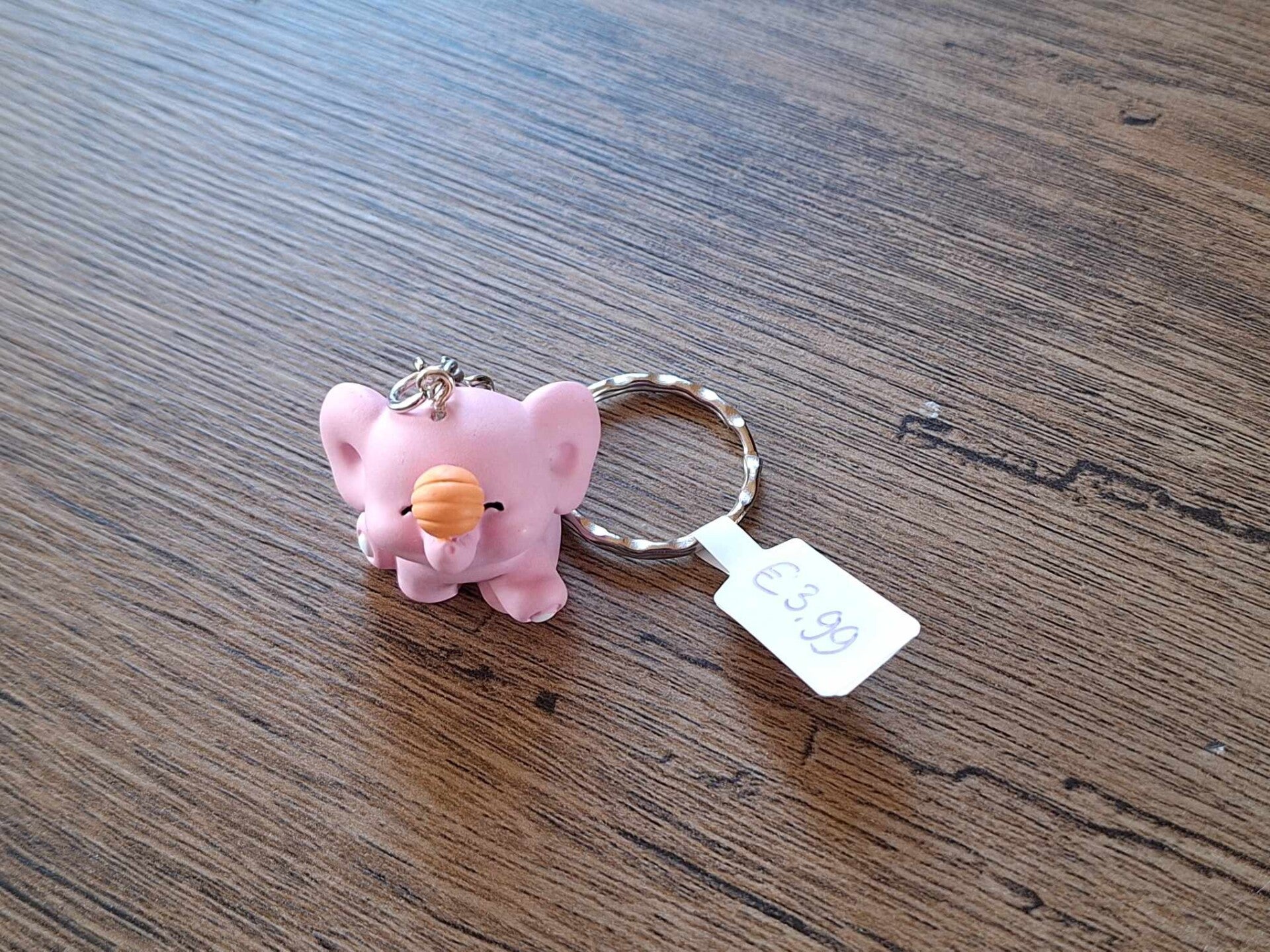 Leuk om aan een sleutel of tas te hangen, of als cadeau te geven.De sleutelhanger is handgemaakt met een leuk dier figuurtje : Roze Olifantje !!Het figuurtje is ongeveer 3cm hoog, 2cm breedMateriaal : Hars