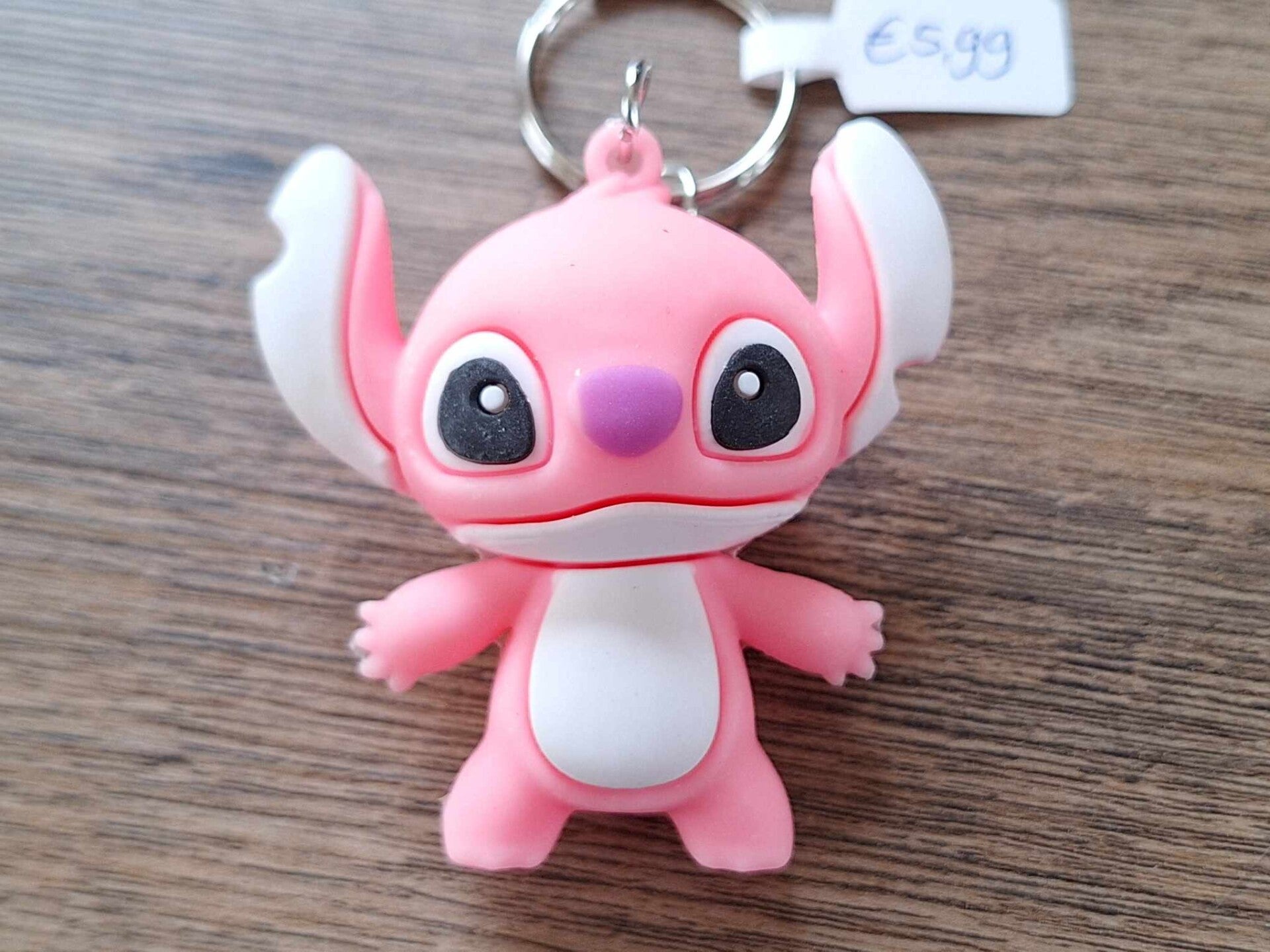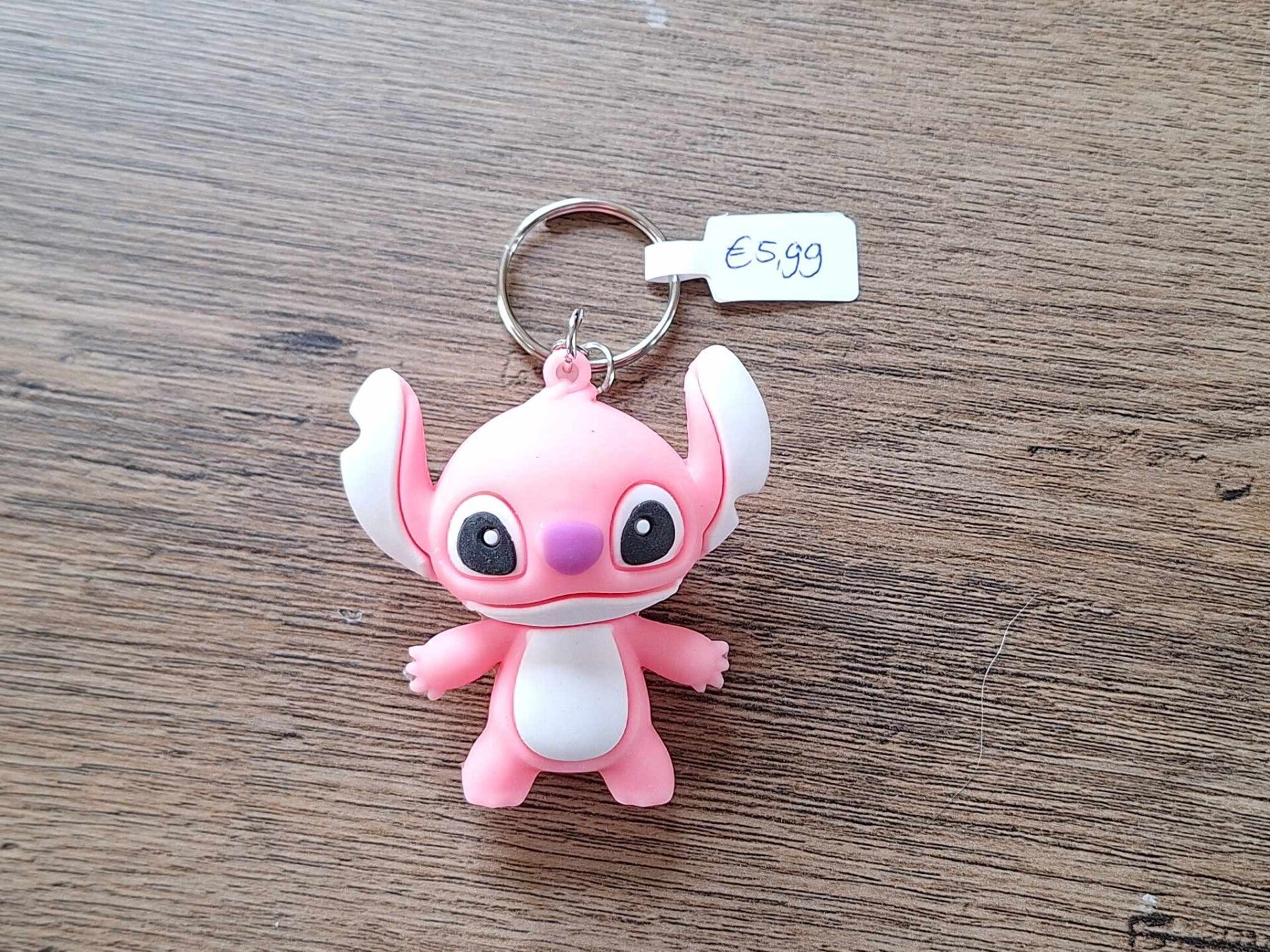 Leuk om aan een sleutel of tas te hangen, of als cadeau te geven.De sleutelhanger is handgemaakt met een leuk figuurtje : Angel !!Komt uit de disney film : Lilo & Stitch.Het figuurtje is 5,5Cm hoog en 5cm breed.Materiaal : Silicone.