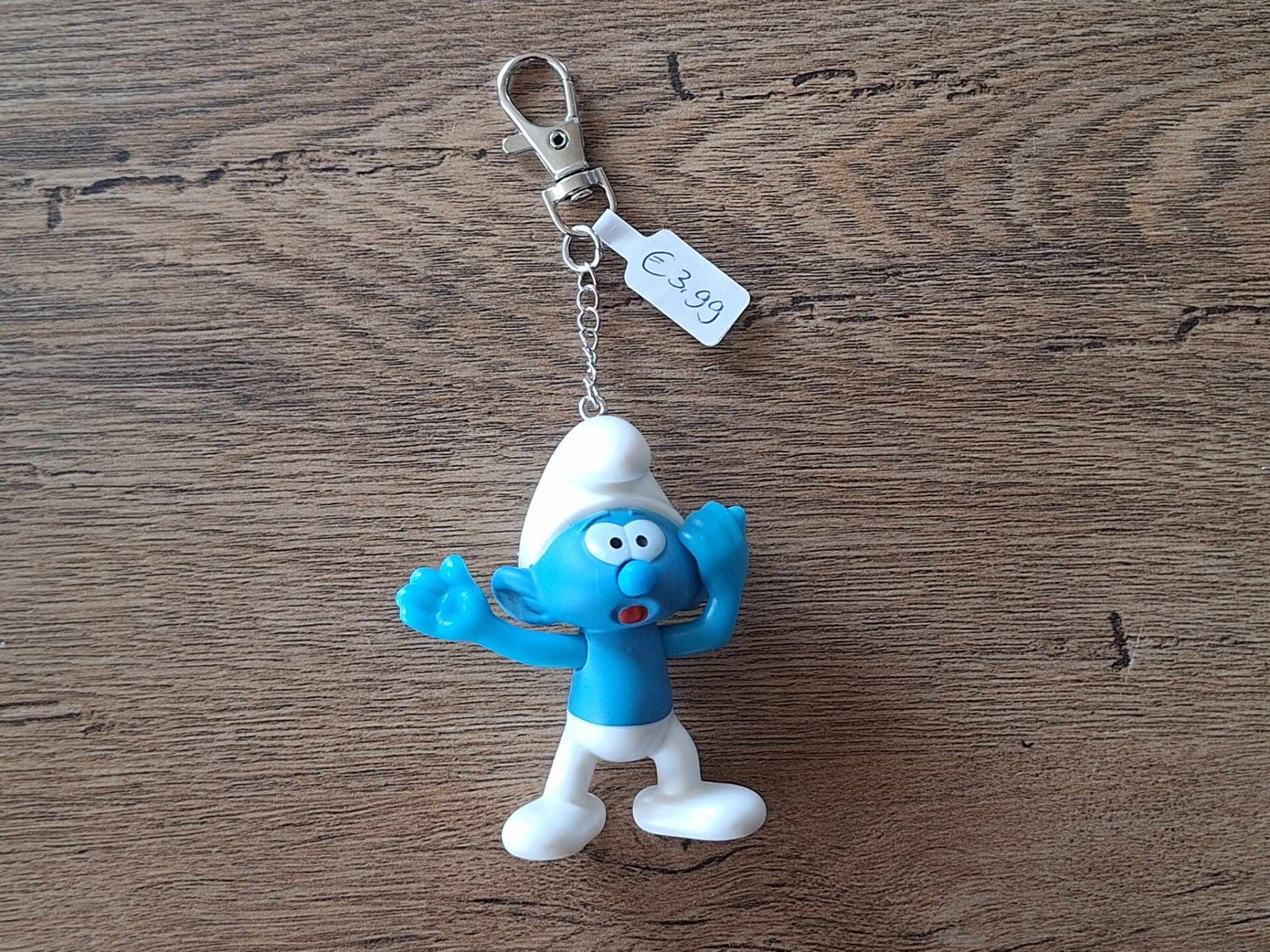 Leuk om aan een tas of sleutel te hangen, of als cadeau te geven.De Tassenhanger is handgemaakt met een leuk figuurtje : Bange Smurf !!Het figuurtje is 7cm groot.Materiaal : kunststof.
