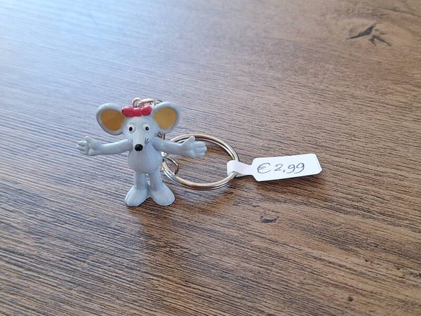 Leuk om aan een sleutel of tas te hangen, of als cadeau te geven.De sleutelhanger is handgemaakt met een leuk figuurtje : Ieniemienie !!Komt uit de tv-serie : SesamstraatHet figuurtje is ongeveer 3,7cm hoog.Materiaal : Kunststof.