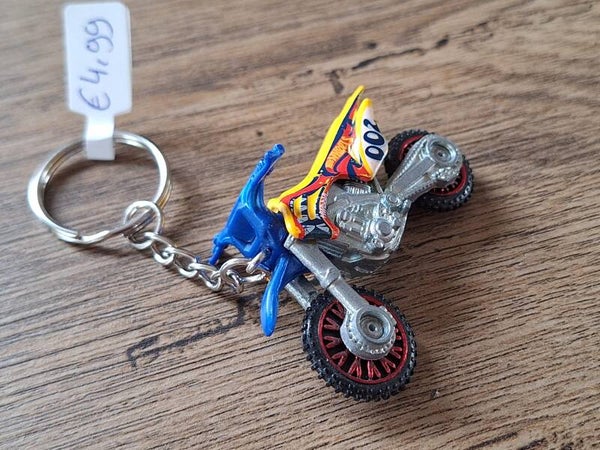 De sleutelhanger is handgemaakt met een leuk Hotwheels figuurtje : Crossmotor !!Het figuurtje is 6cm lang en ongeveer 4cm hoog.Materiaal : metaal / kunststof.