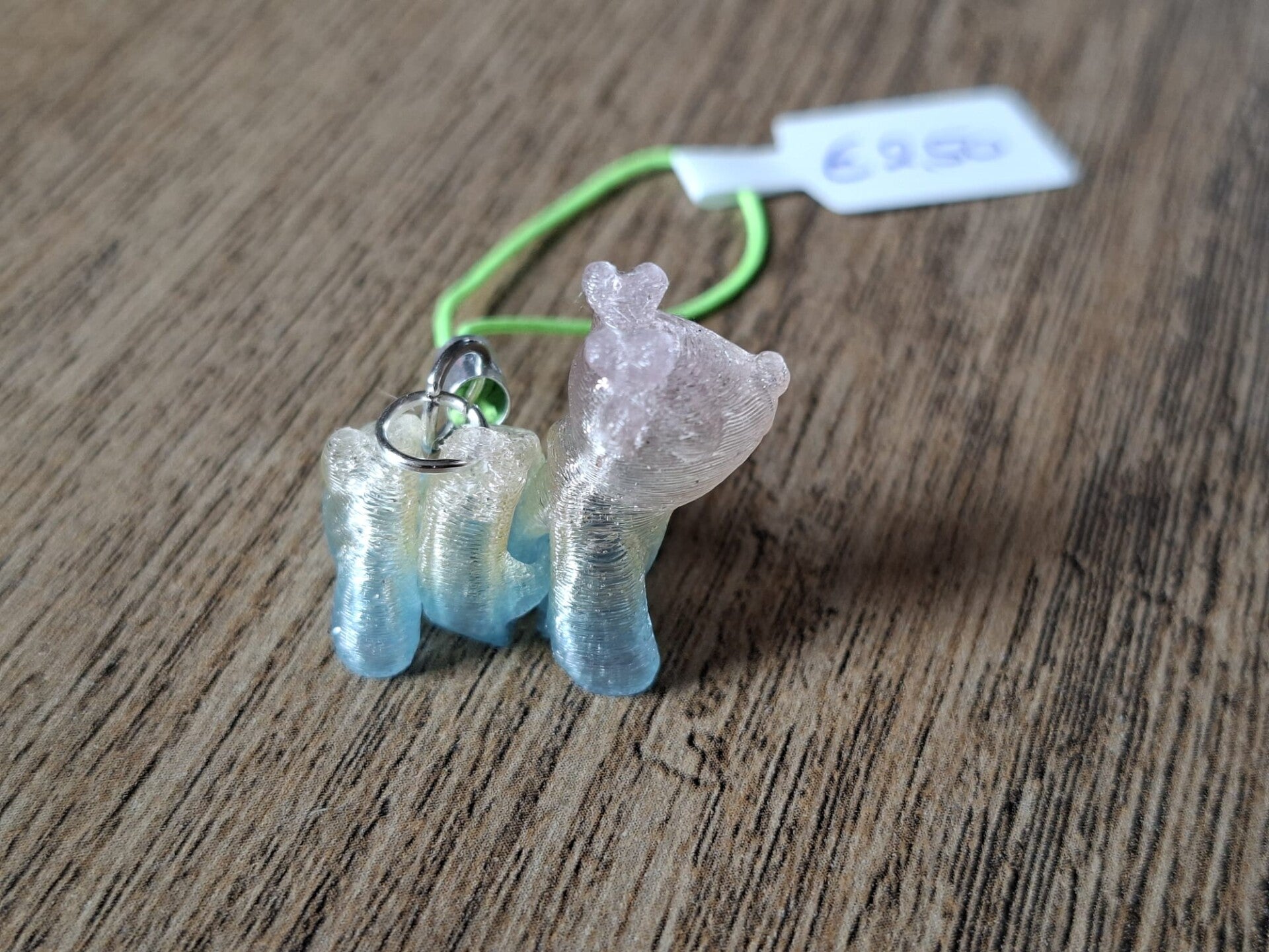 De hanger is ongeveer 2,5cm hoog en ongeveer 2cm lang.