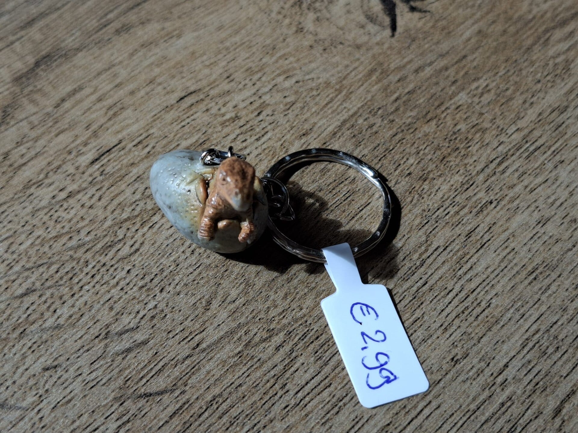 Leuk om aan een sleutel of tas te hangen, of als cadeau te geven.De sleutelhanger is handgemaakt met een leuk dino figuurtje : T-Rex in Ei !!Het figuurtje is ongeveer 3cm grootMateriaal : PVC.