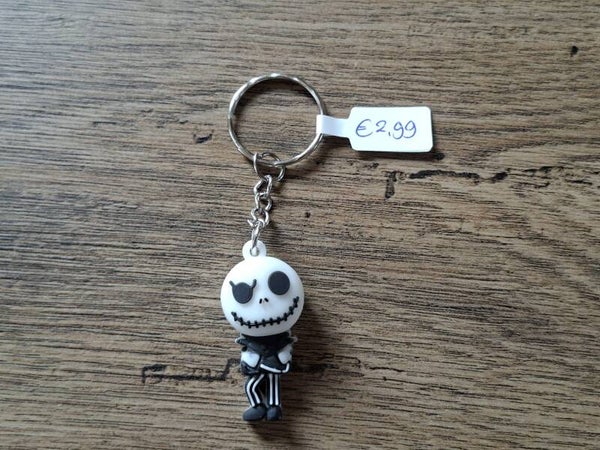De sleutelhanger is handgemaakt met een leuk figuurtje : Jack Skeleton !!