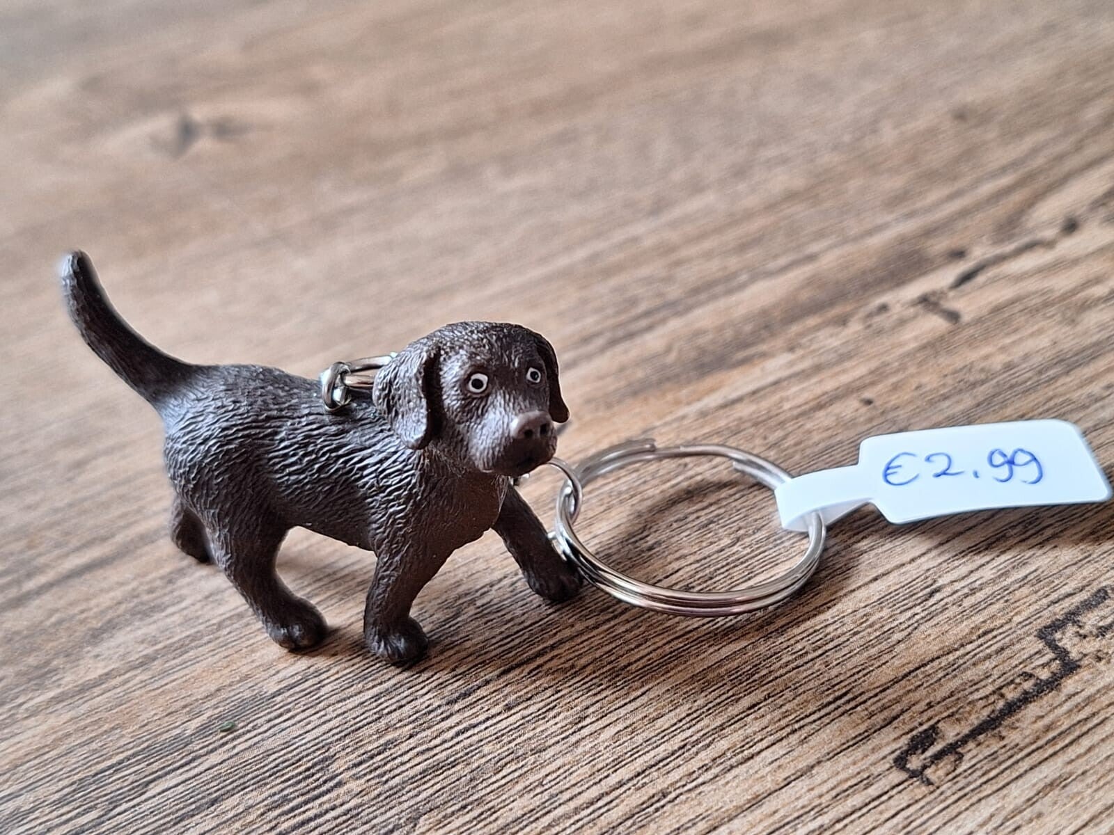Leuk om aan een sleutel of tas te hangen, of als cadeau te geven.De sleutelhanger is handgemaakt met een leuk hond figuurtje : Bruine Labrador !!Het figuurtje is ongeveer 3cm hoog en ongeveer 4,5cm lang.Materiaal : kunststof.