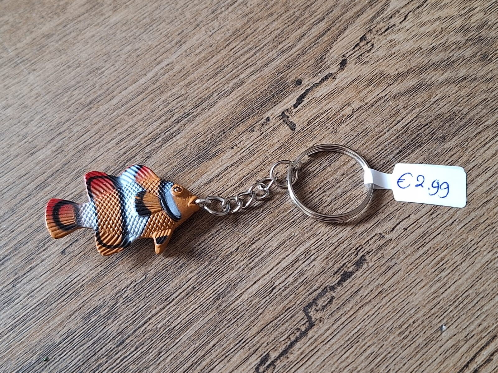 Leuk om aan een sleutel of tas te hangen, of als cadeau te geven.De sleutelhanger is handgemaakt met een leuk dier figuurtje : Clownvis !!Het figuurtje is ongeveer 4cm lang en ongeveer 2,5cm breed.Materiaal : pvc.