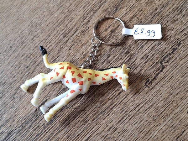 De sleutelhanger is handgemaakt met een leuk dier figuurtje : Giraffe !!Het figuurtje is ongeveer 6,7cm hoog en ongeveer 6cm lang.Materiaal : PVC.