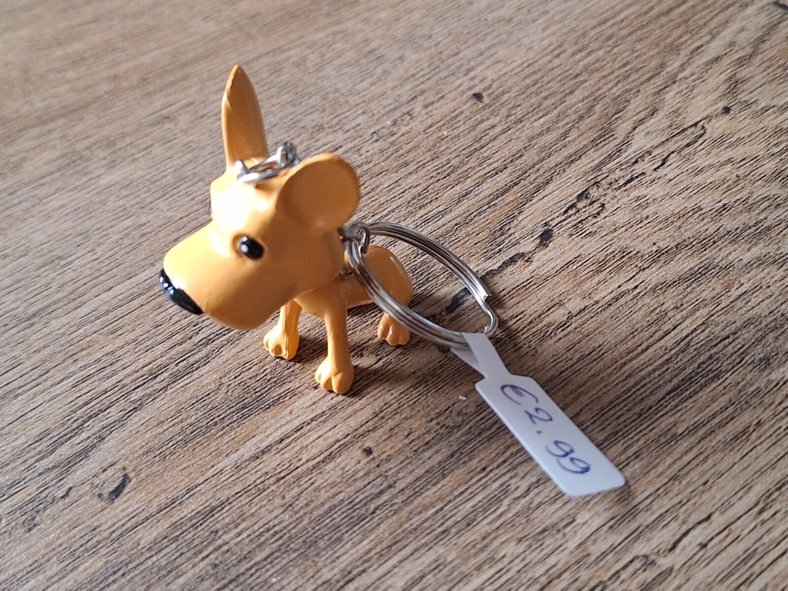 De sleutelhanger is handgemaakt met een leuk dier figuurtje : Lichtbruin hondje !!Het figuurtje is ongeveer 4cm groot.Materiaal : PVC.