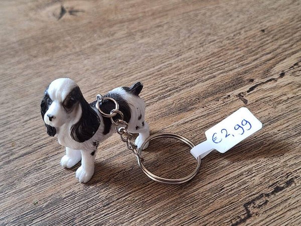 De sleutelhanger is handgemaakt met een leuk dier figuurtje : Spaniel !!Het figuurtje is ongeveer 4cm hoog en ongeveer 4,5cm lang.Materiaal : PVC.