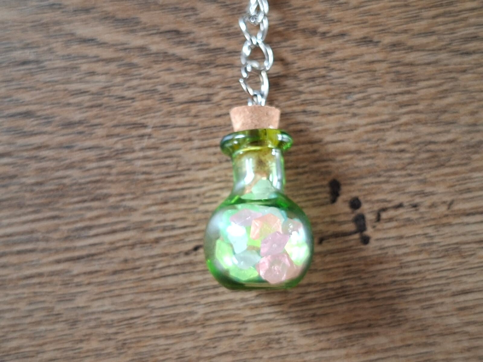 Zit glow in dark zand in.De hanger is ongeveer 3cm groot.Materiaal : Glas.