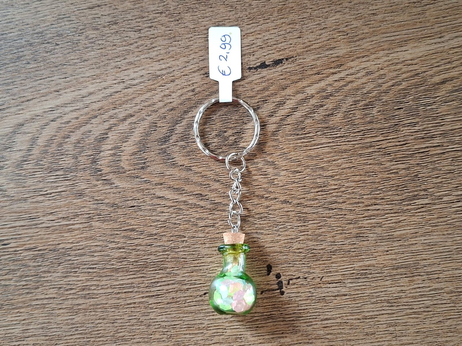 Leuk om aan een sleutel of tas te hangen, of als cadeau te geven.De sleutelhanger is handgemaakt met een leuke hanger : Groen Flesje !!