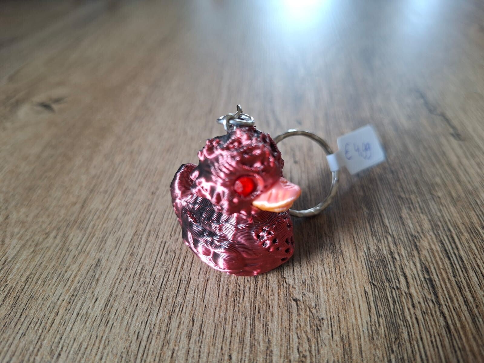 Leuk om aan een sleutel of tas te hangen, of als cadeau te geven.De sleutelhanger is handgemaakt met een leuke 3D hanger : Halloween Badeend !!De hanger is ongeveer 3,5cm hoog en ongeveer 3,5cm lang.Materiaal : Kunststof.