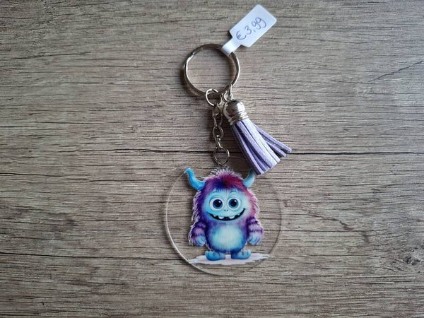 De sleutelhanger is handgemaakt met een 2D ronde hanger met leuk monster plaatje aan 1 zijde !!