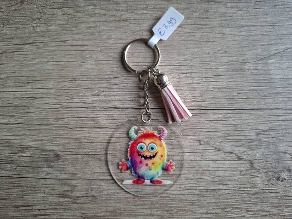 De sleutelhanger is handgemaakt met een 2D ronde hanger met leuk monster plaatje aan 1 zijde !!