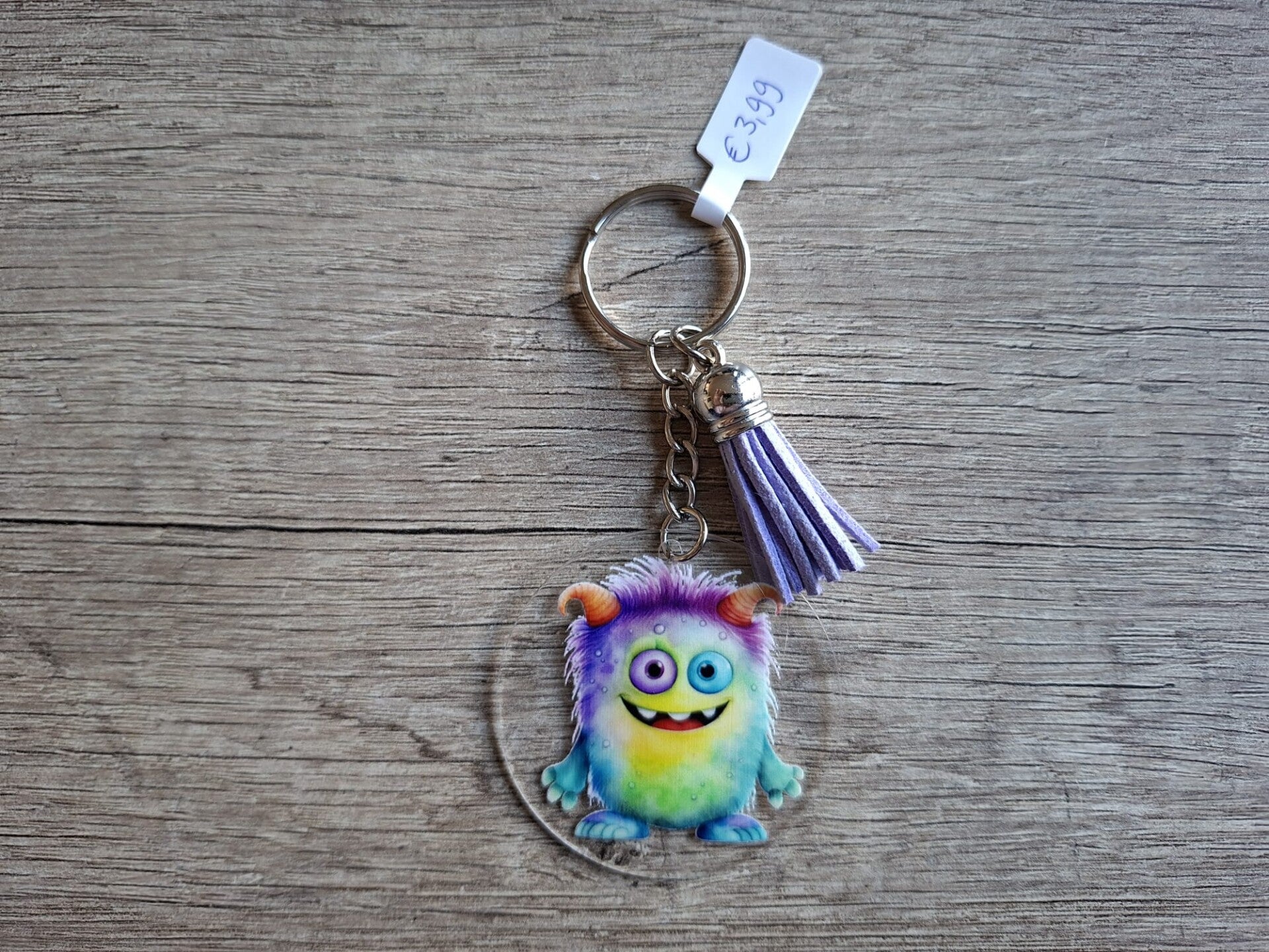 De sleutelhanger is handgemaakt met een 2D ronde hanger met leuk monster plaatje aan 1 zijde !!