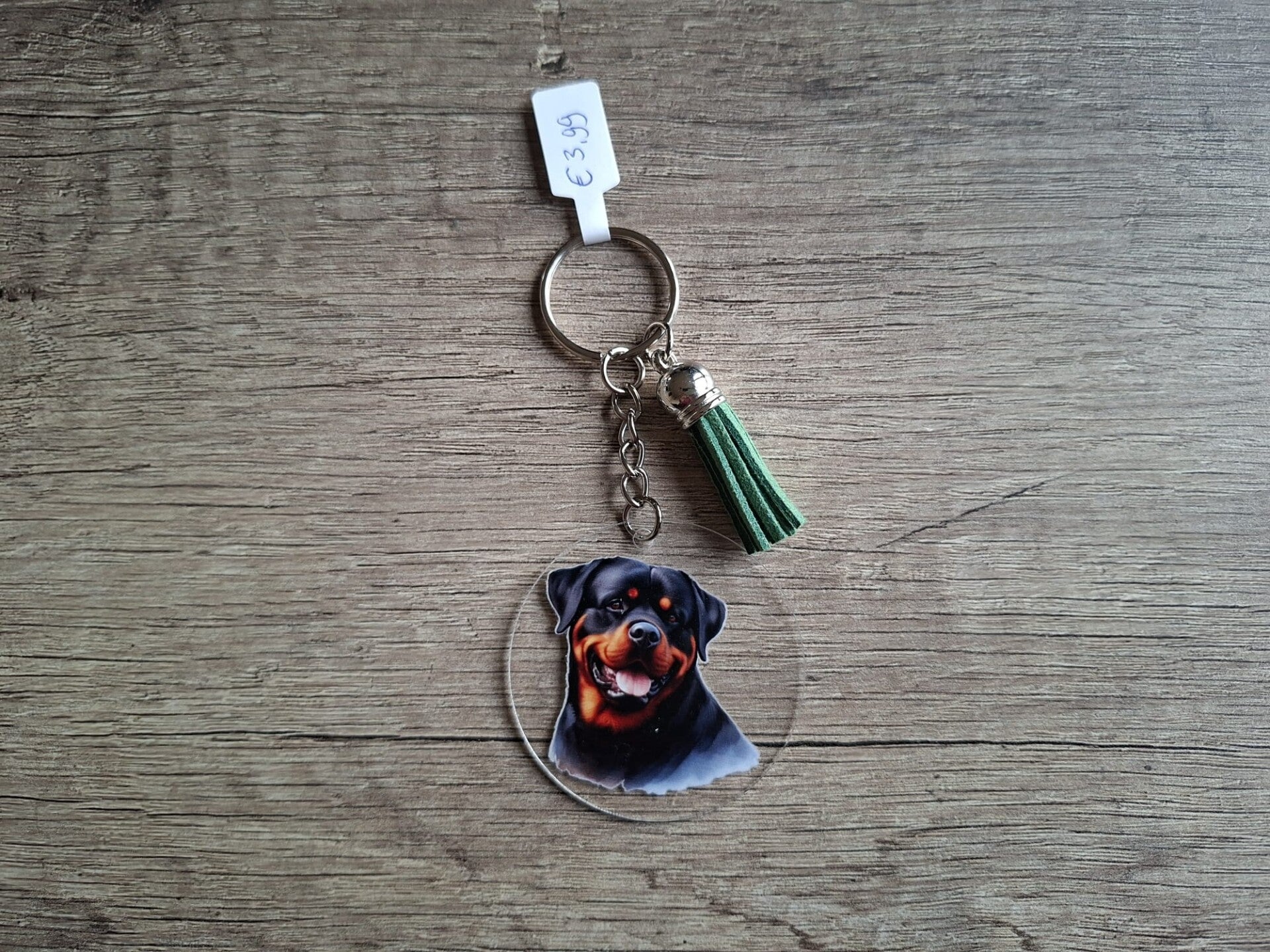 De sleutelhanger is handgemaakt met een 2D ronde hanger met een plaatje van een Rottweiler aan 1 zijde !!