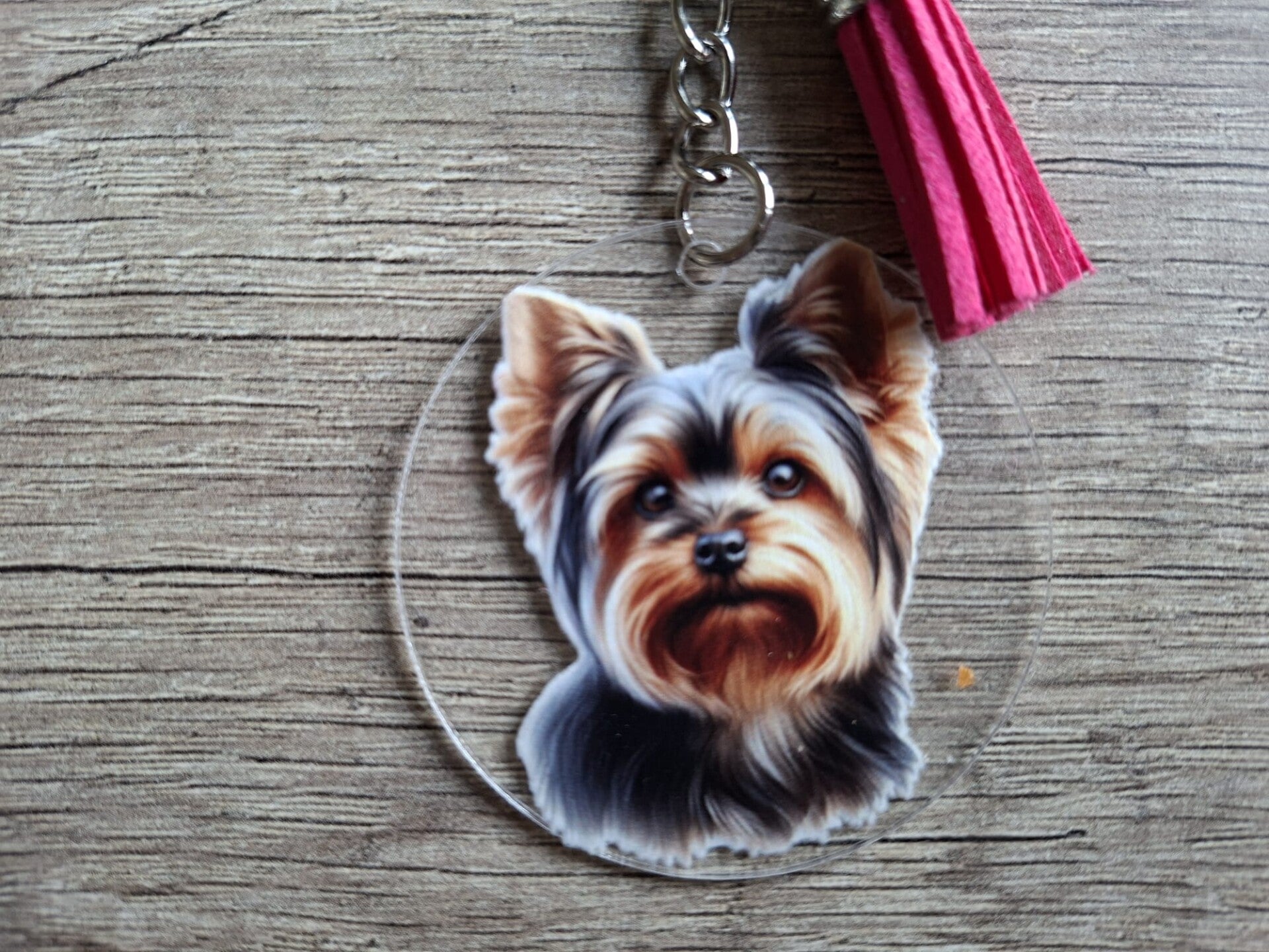 De sleutelhanger is handgemaakt met een 2D ronde hanger met een plaatje van een Yorkshire Terriër aan 1 zijde !!