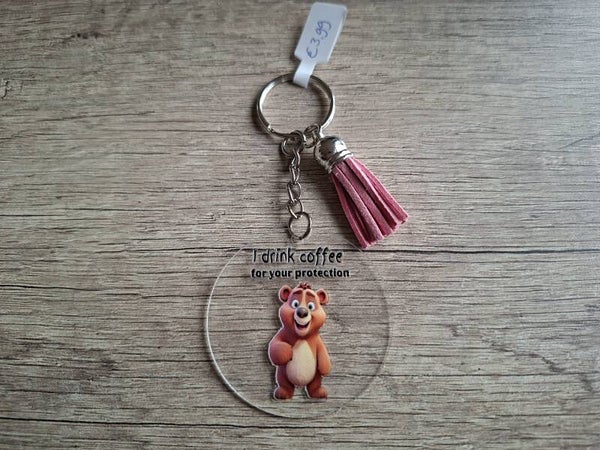 De sleutelhanger is handgemaakt met een 2D ronde hanger met een plaatje aan 1 zijde !!