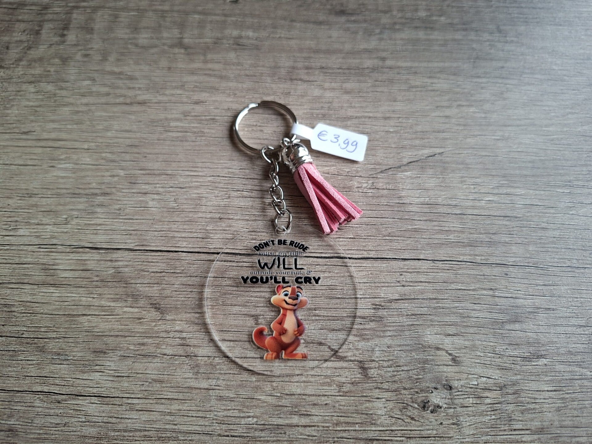 De sleutelhanger is handgemaakt met een 2D ronde hanger met een plaatje aan 1 zijde !!