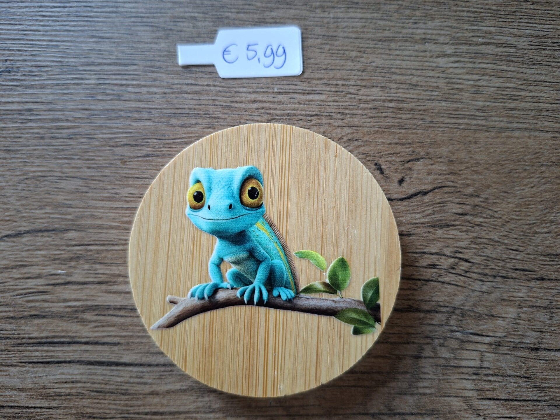 De Flessen-Opener is handgemaakt met een leuk dier plaatje : Groene Hagedis !!